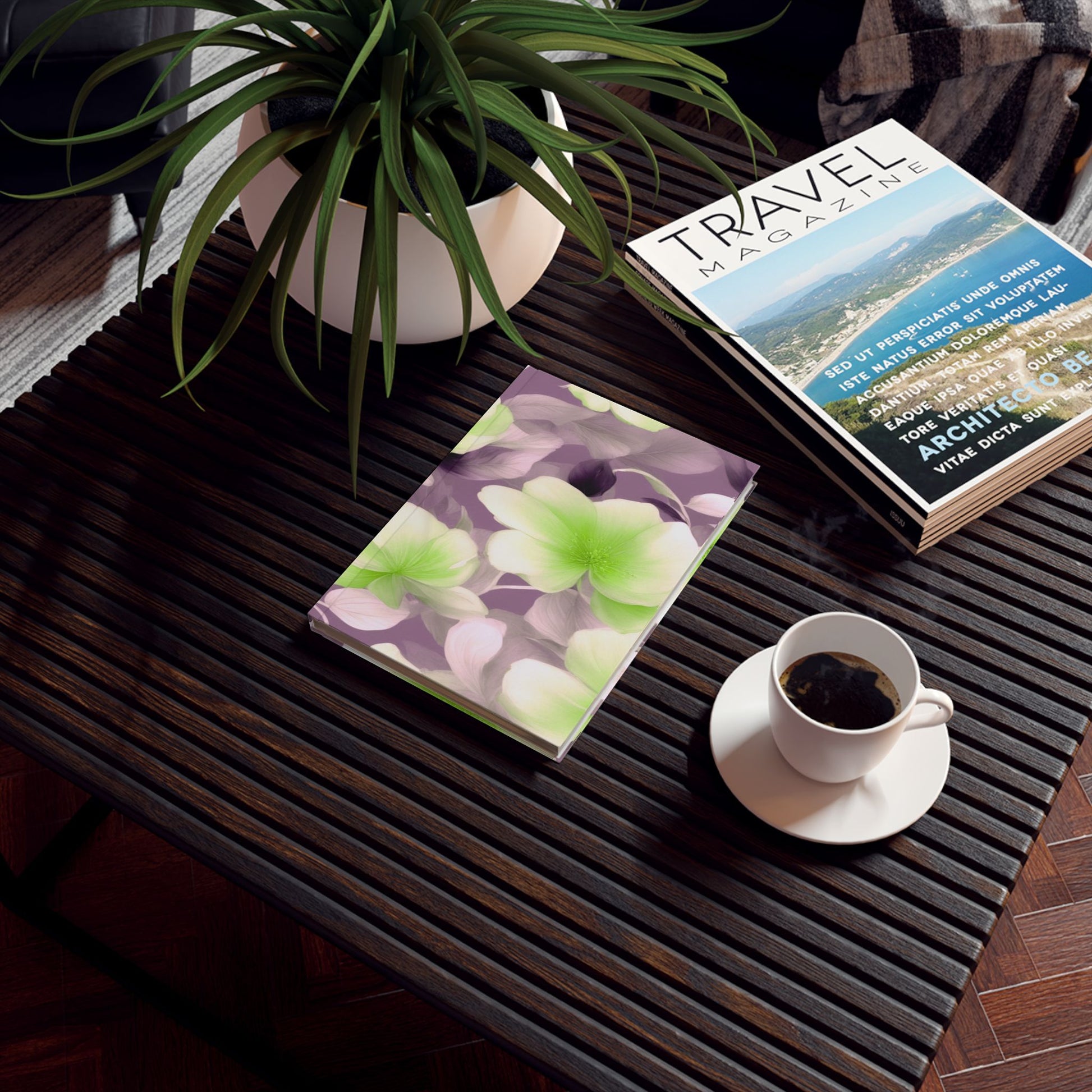 Lime Lavender Floral Bunch Hard Backed Journal with 128 blank pages, 5.2" x 7.4"