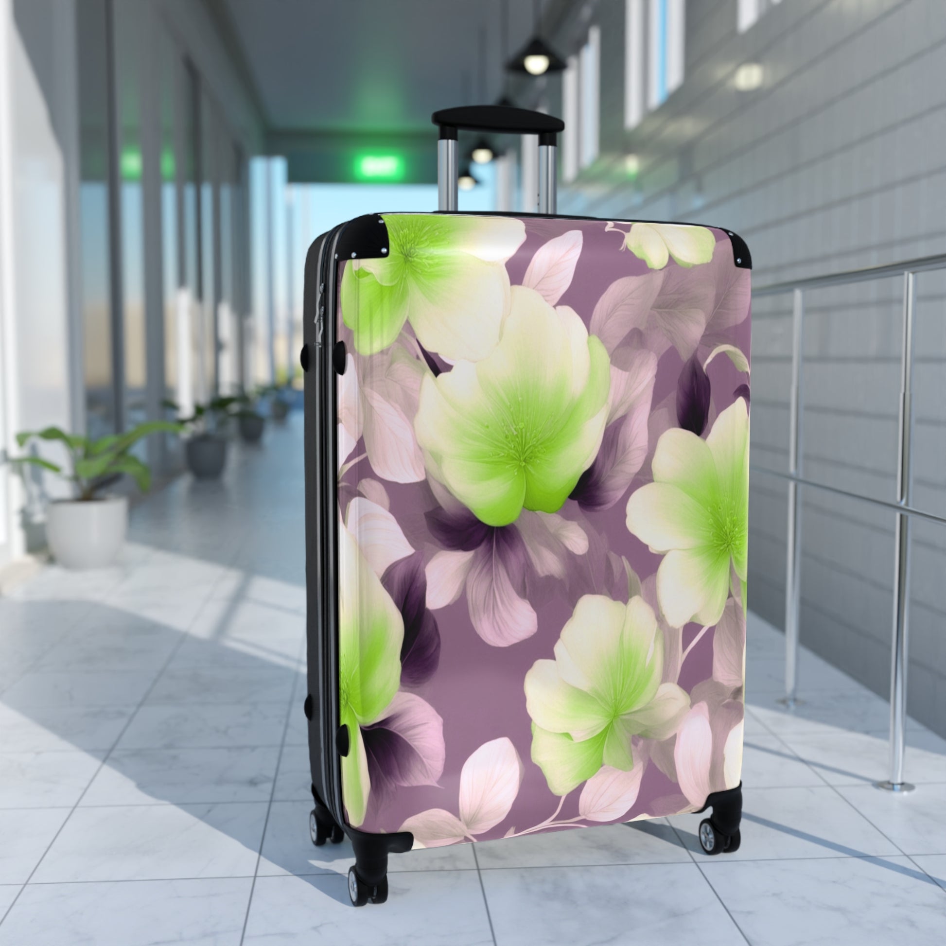Lime Lavender Floral Bunch Large Suitcase with built in lock, 4 double-wheels, telescopic handle, and ABS back hard-shell