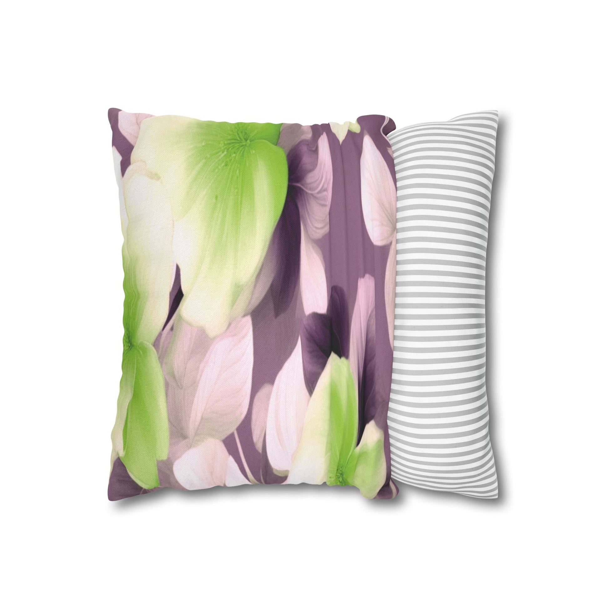 Lime Lavender Floral Bunch Spun Polyester Square Pillowcase, 14" x 14"