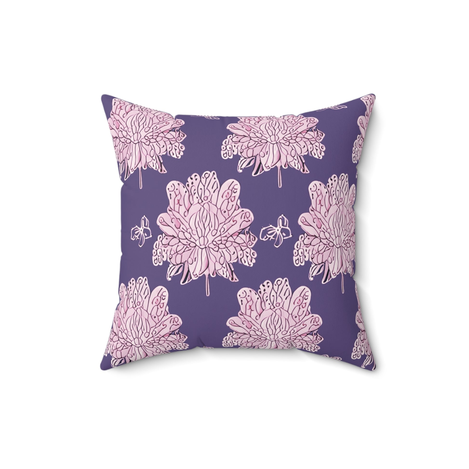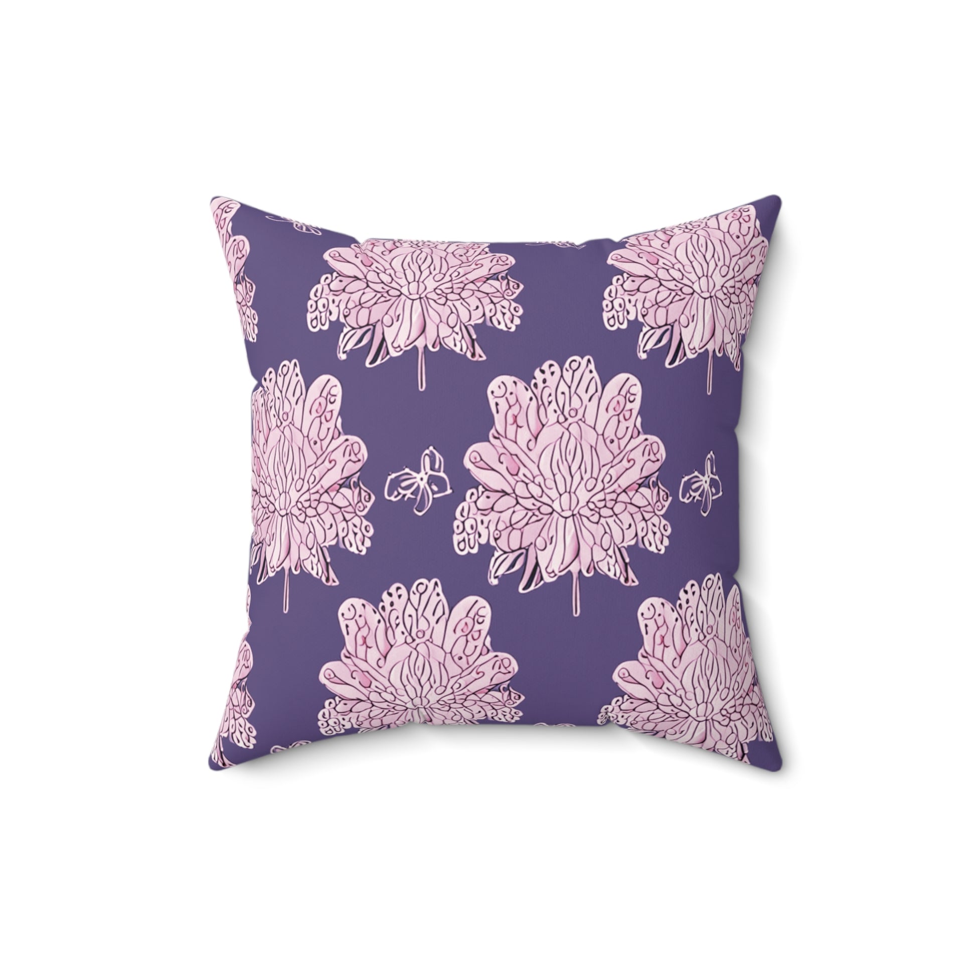 Magenta Floral Butterflies 16" x 16" Faux Suede Square Pillow