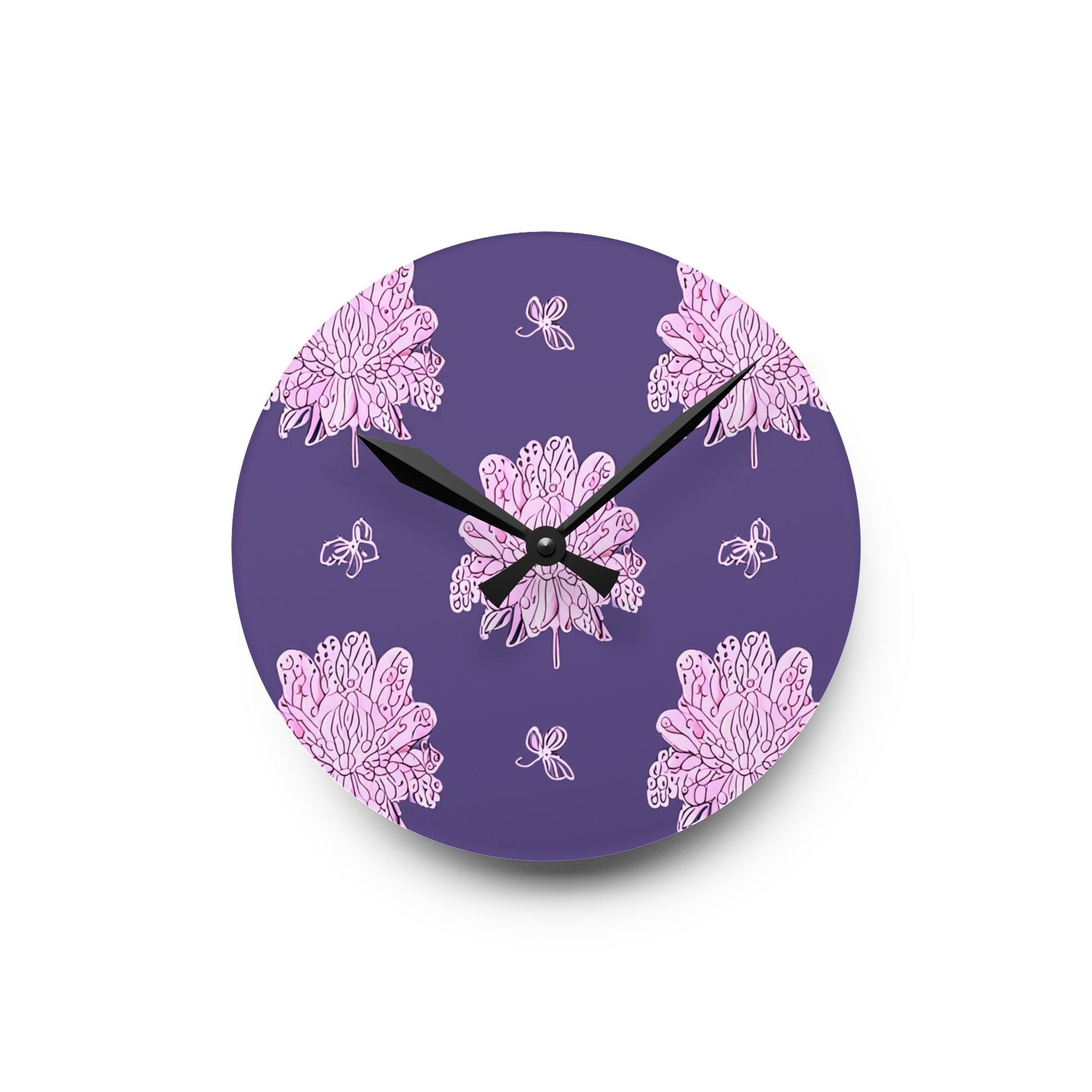 Magenta Floral Butterflies Acrylic Round Wall Clock, 8" x 8"