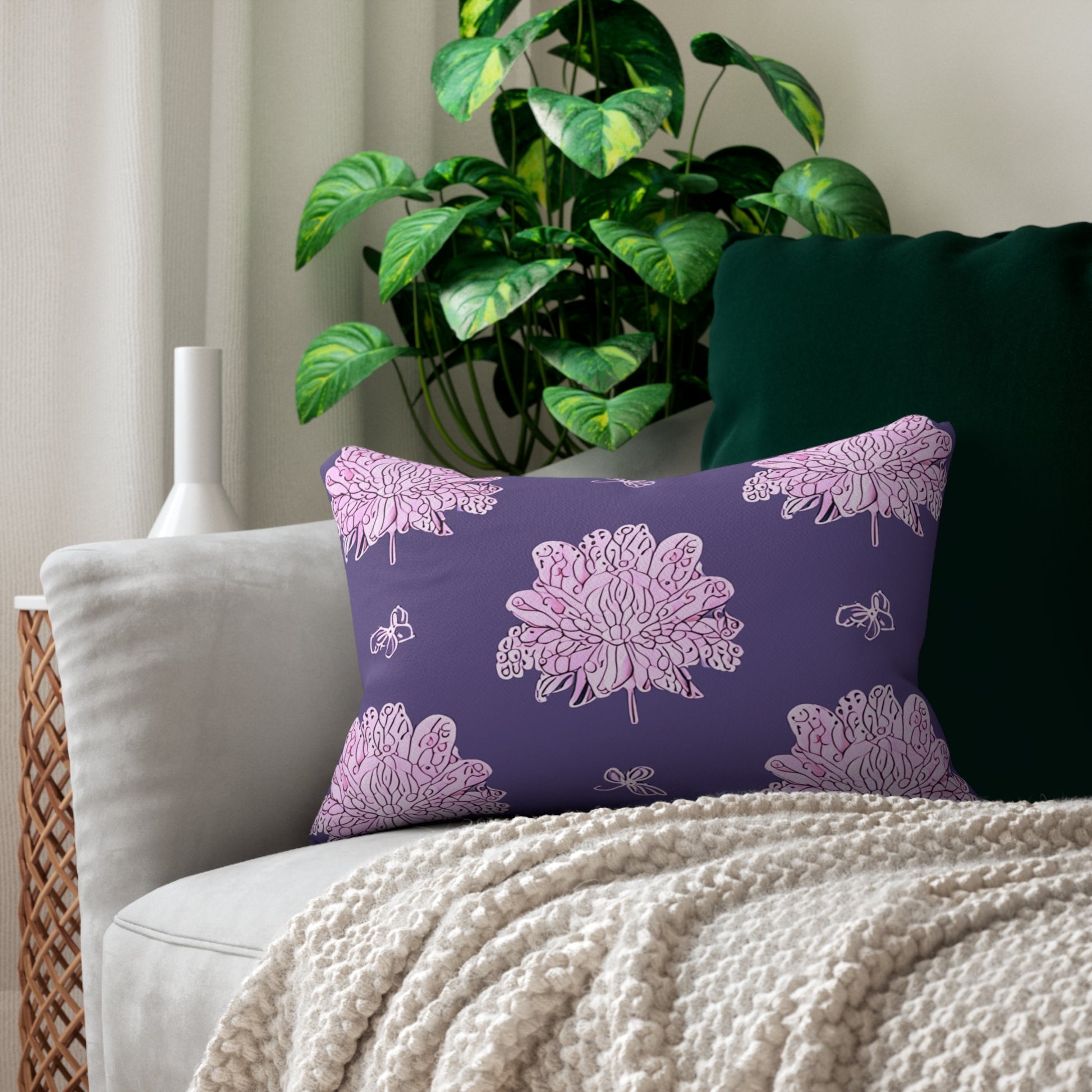 Magenta Floral Butterflies Spun Polyester Lumbar Pillow, 20" x 14"