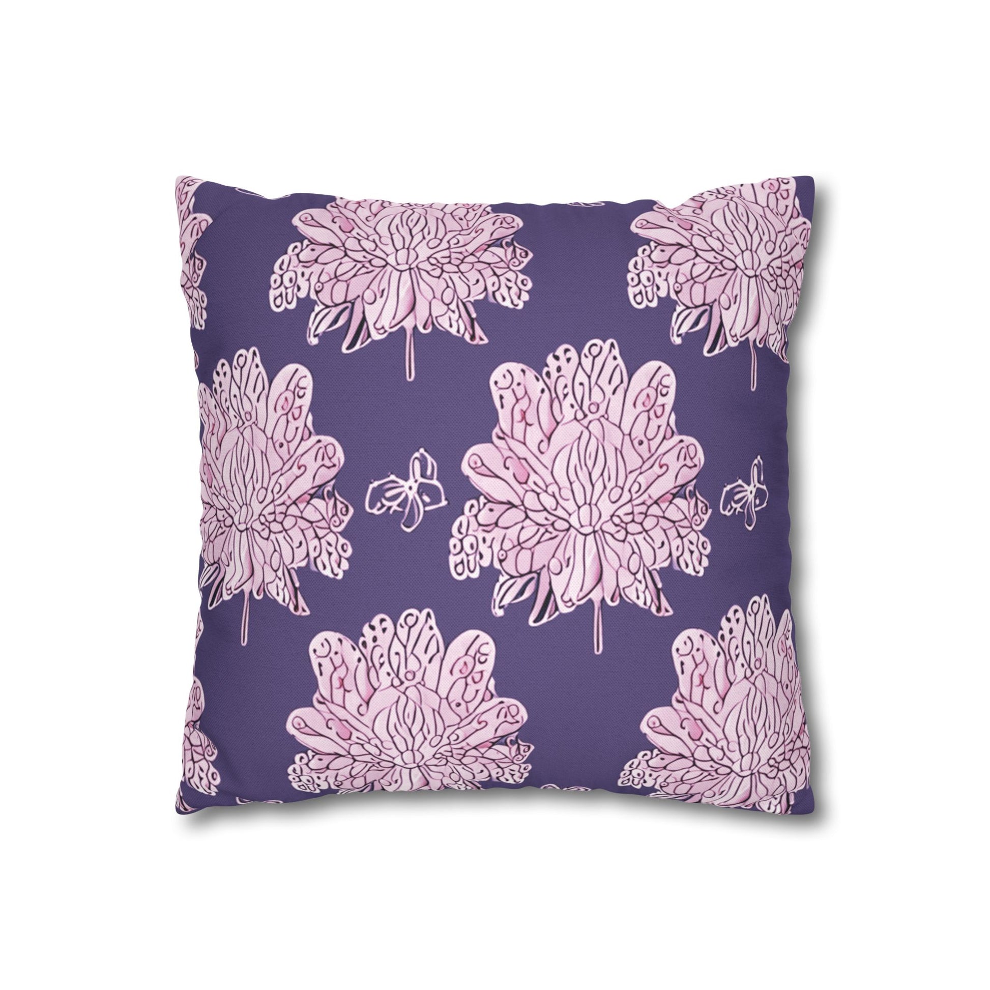 Magenta Floral Butterflies Spun Polyester Square Pillowcase, 14" x 14"