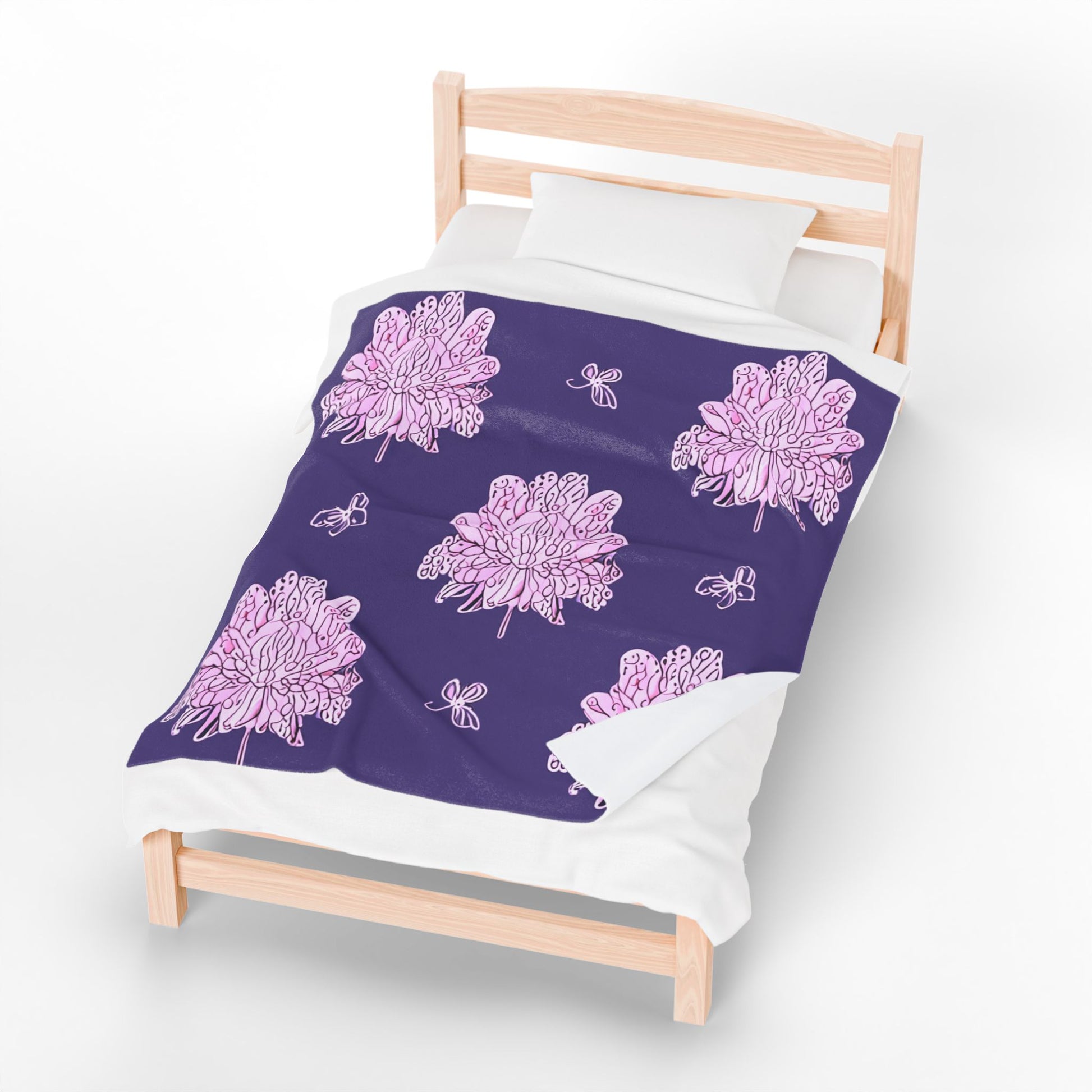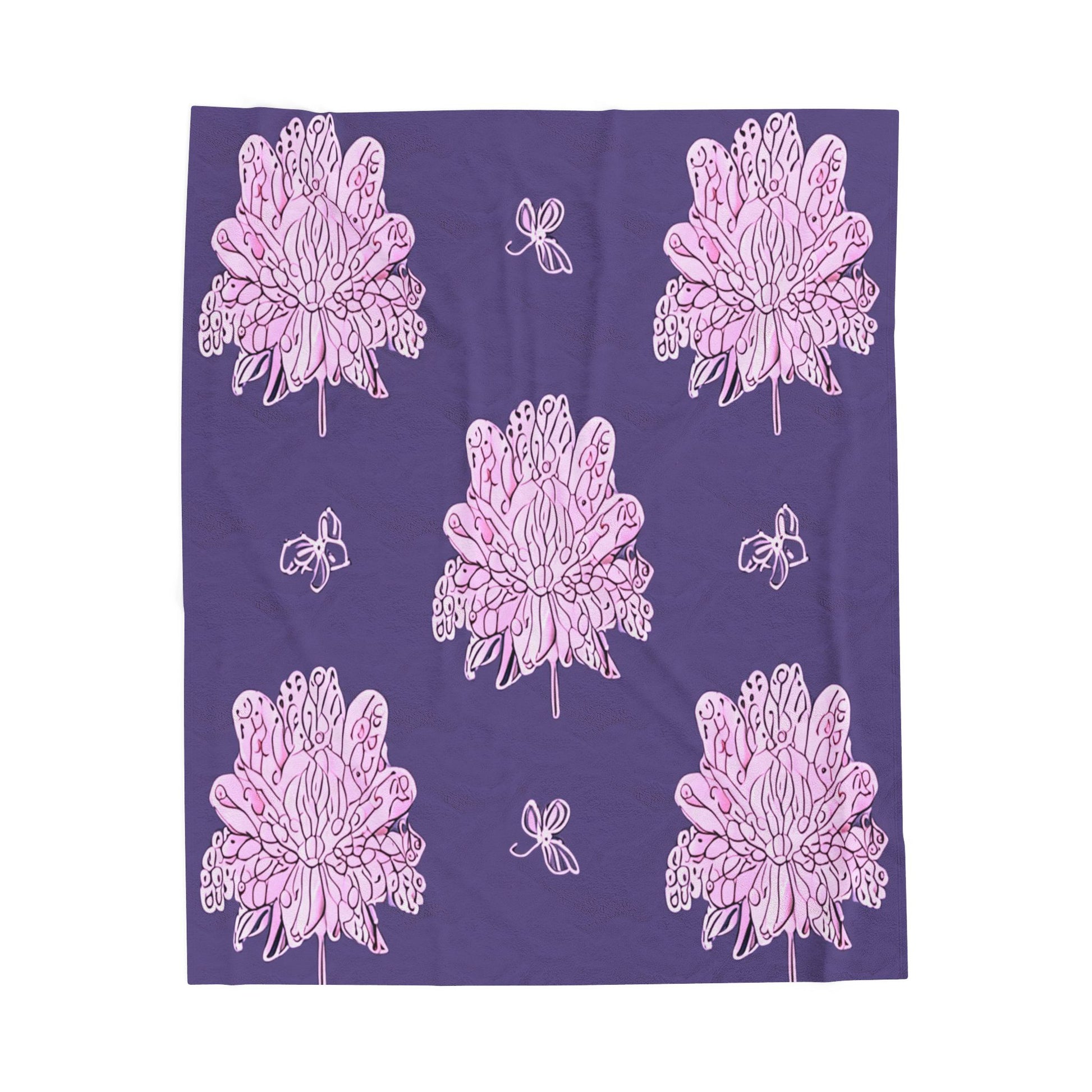 Magenta Floral Butterflies Velveteen Plush Blanket, 50" x 60"