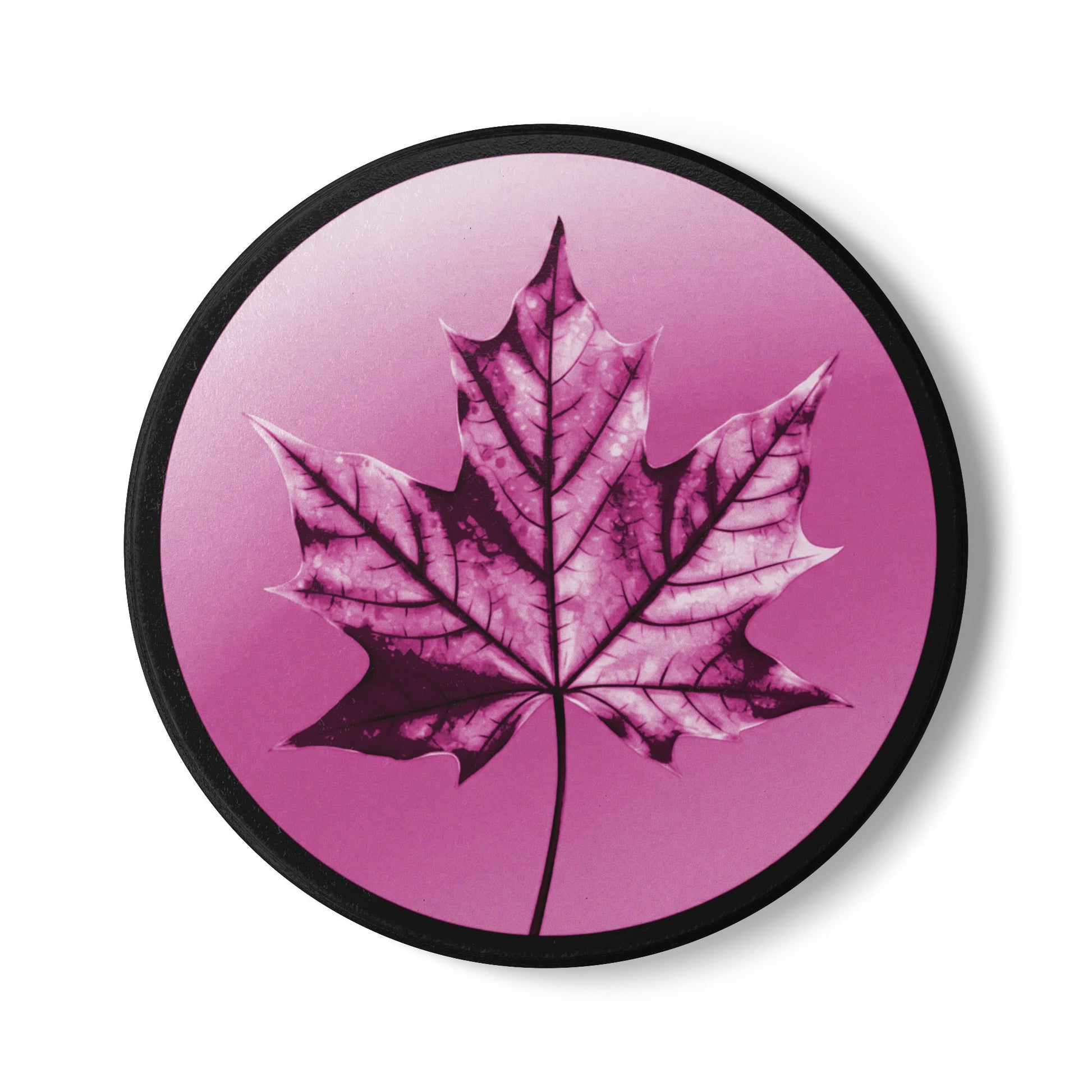 Magenta Maple Leaf 4" x 4" Round Ceramic Coaster