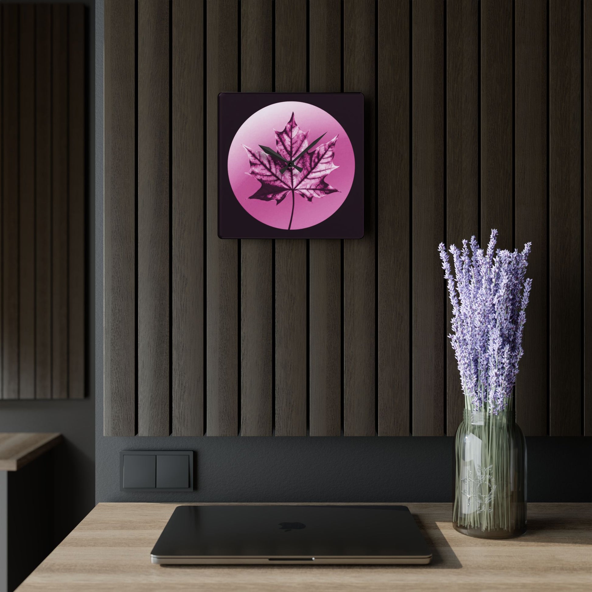 Magenta Maple Leaf Acrylic Wall Clock, Round or Square, 10.75" x 10.75"