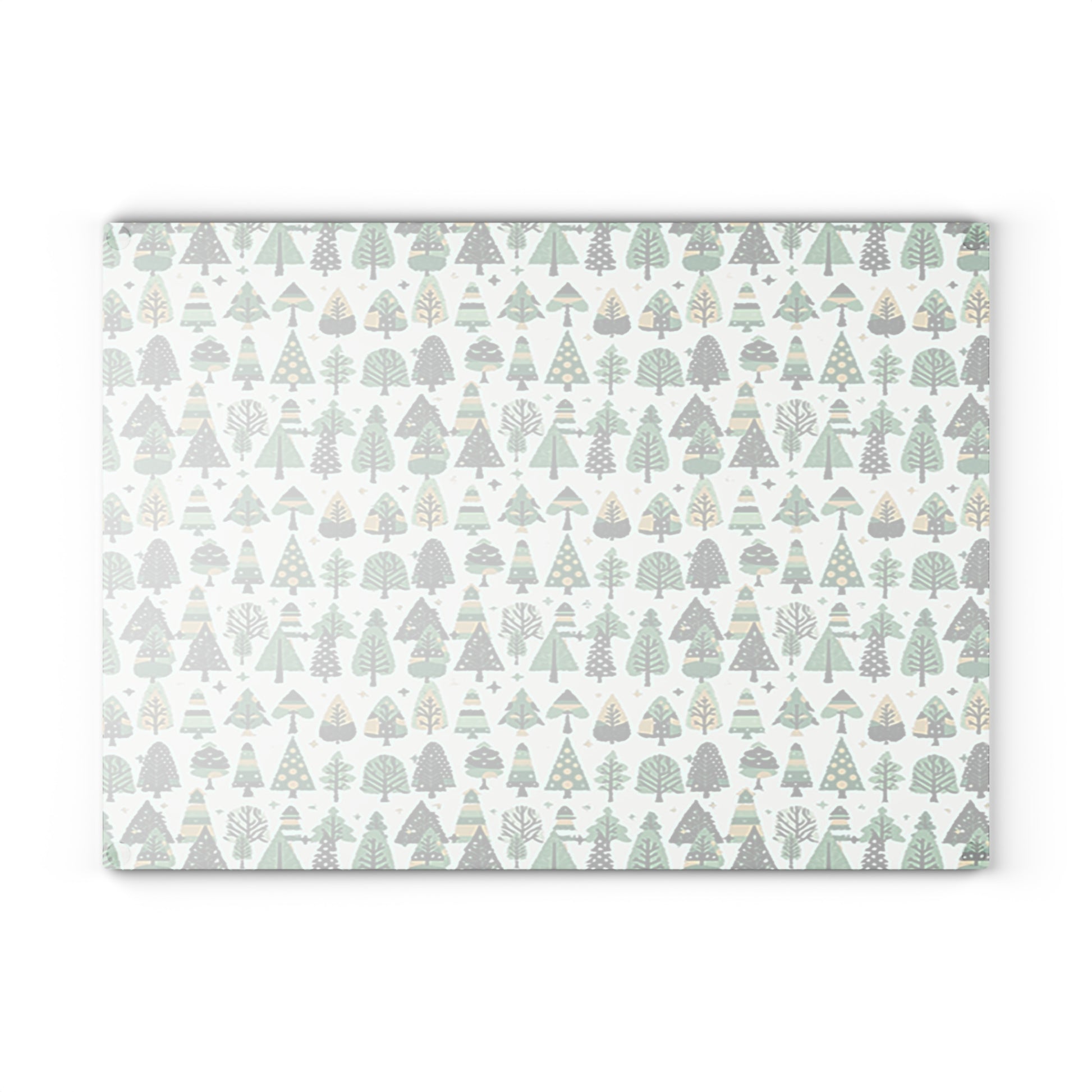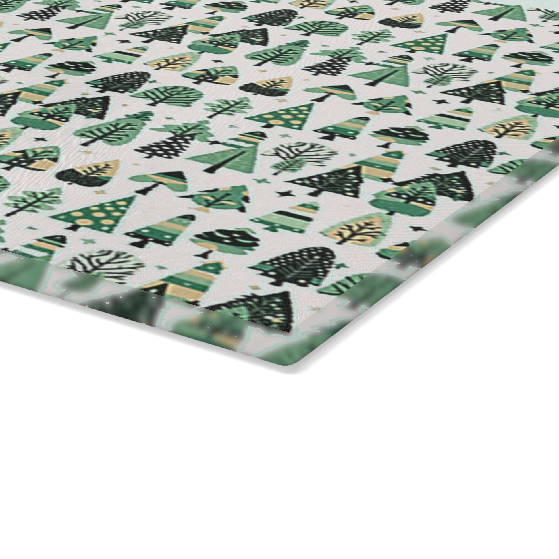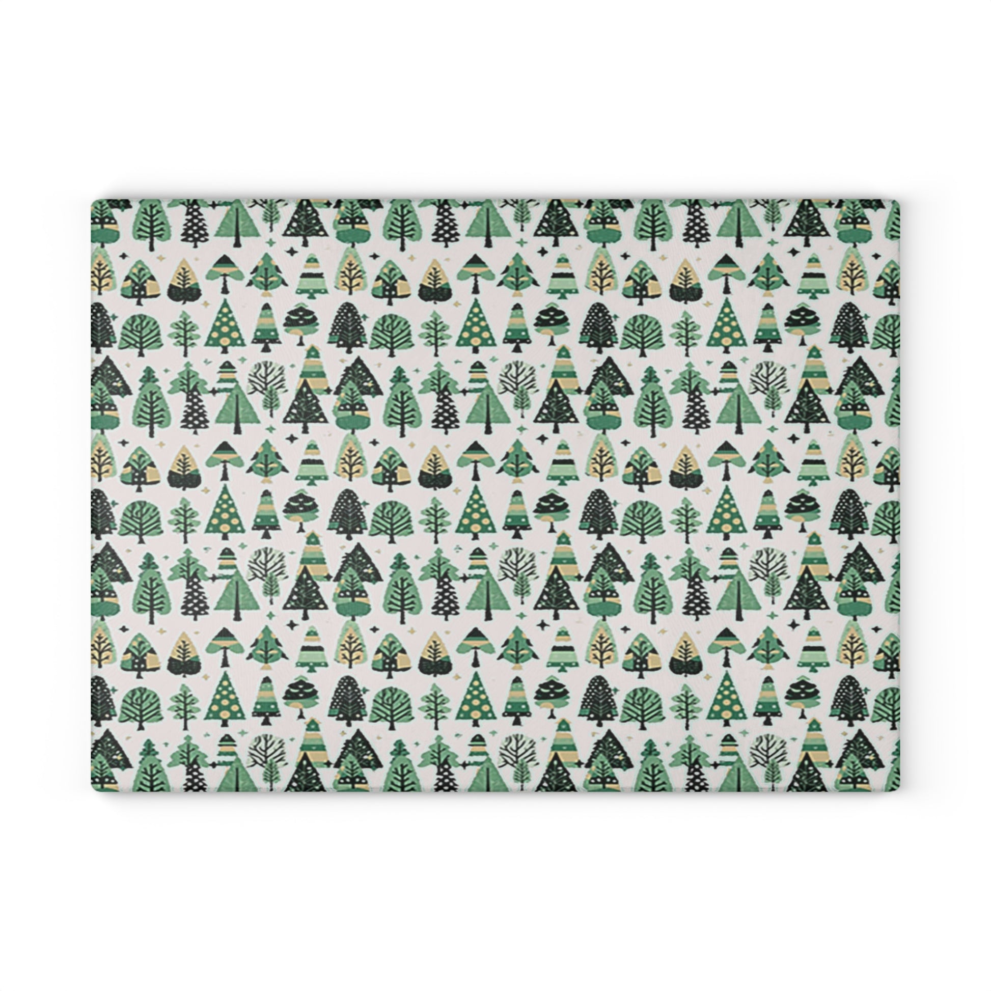 Mini Vintage Green Trees 11" x 15" Glass Cutting Board
