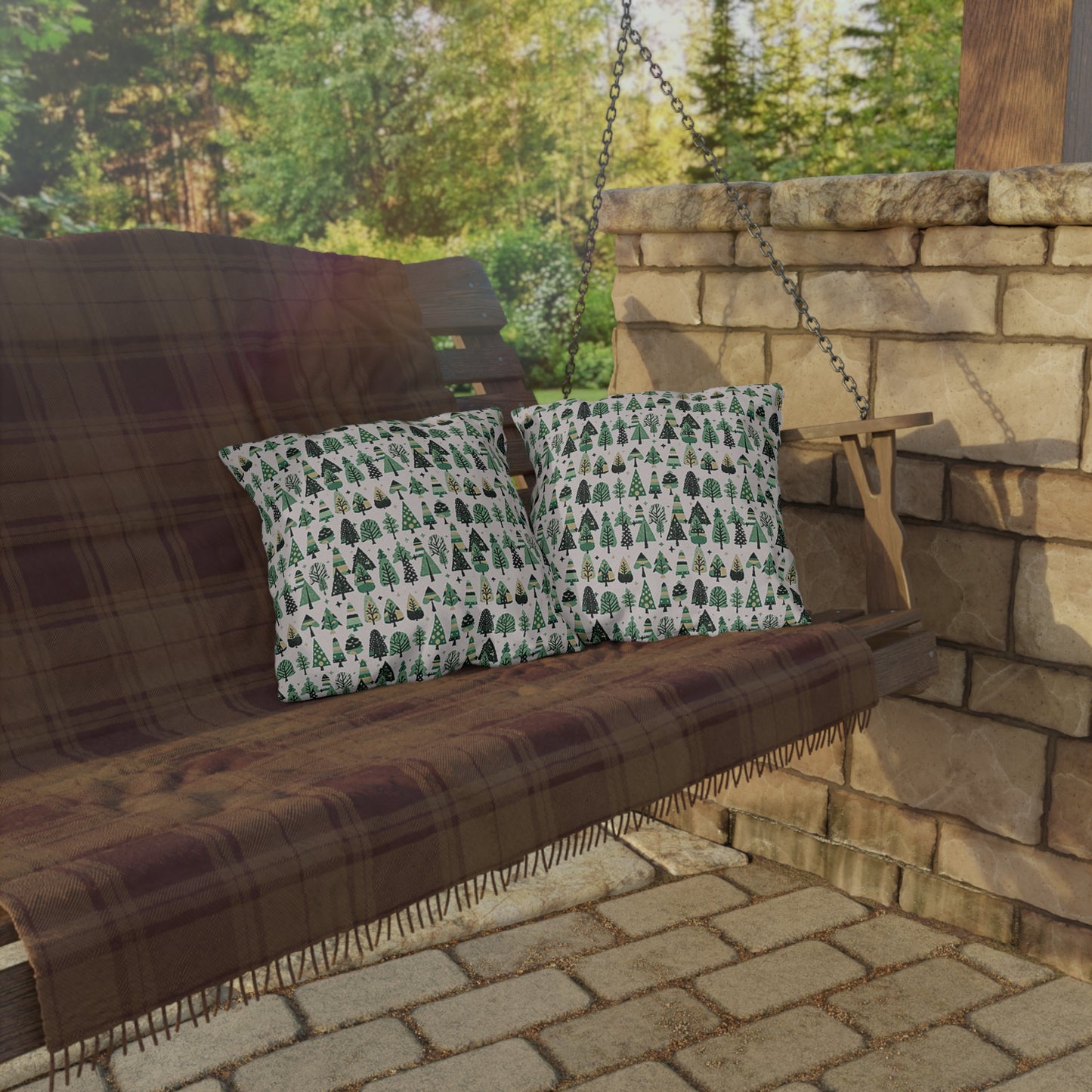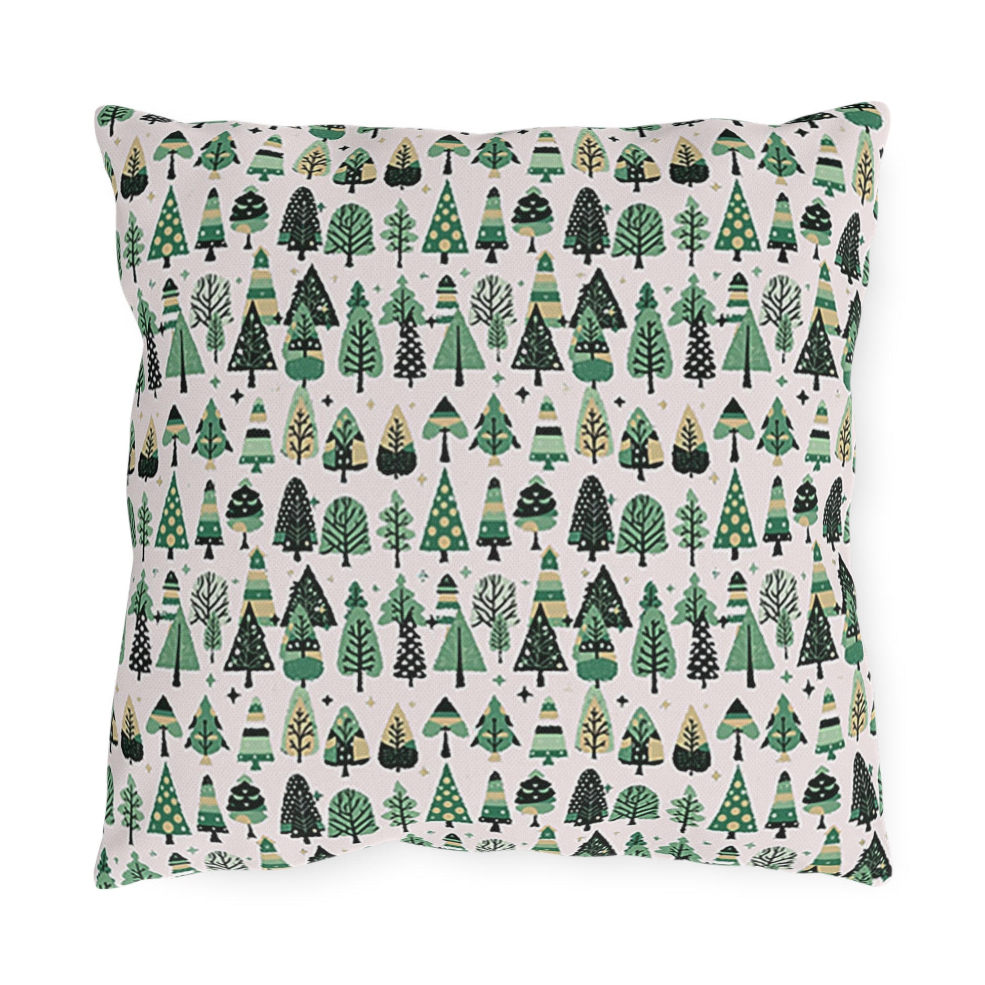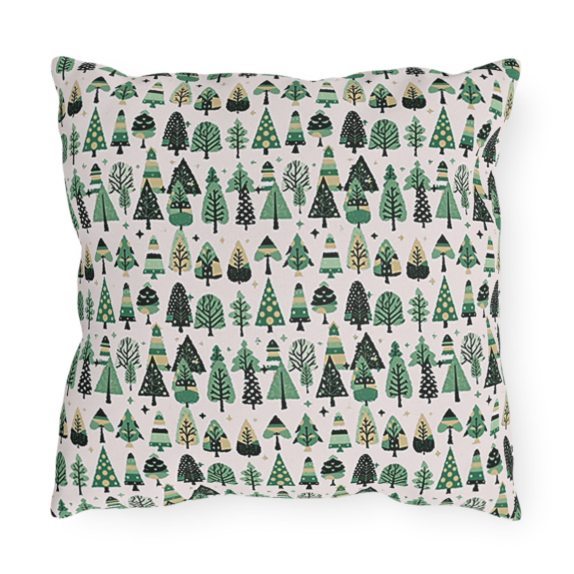 Mini Vintage Green Trees 16" x 16" Outdoor Pillow