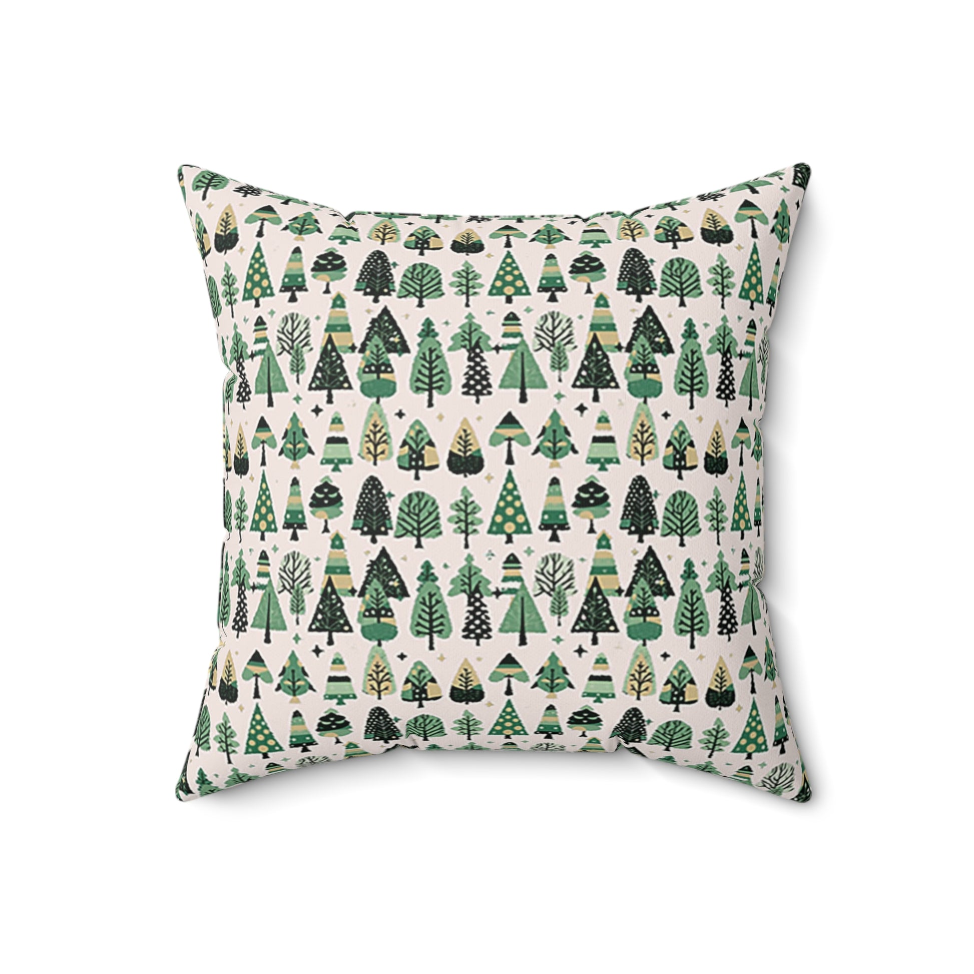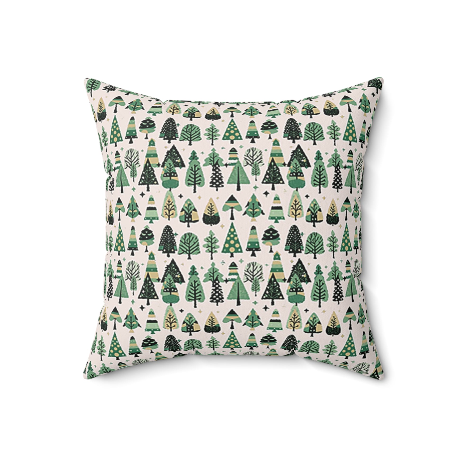 Mini Vintage Green Trees 18" x 18" Faux Suede Square Pillow