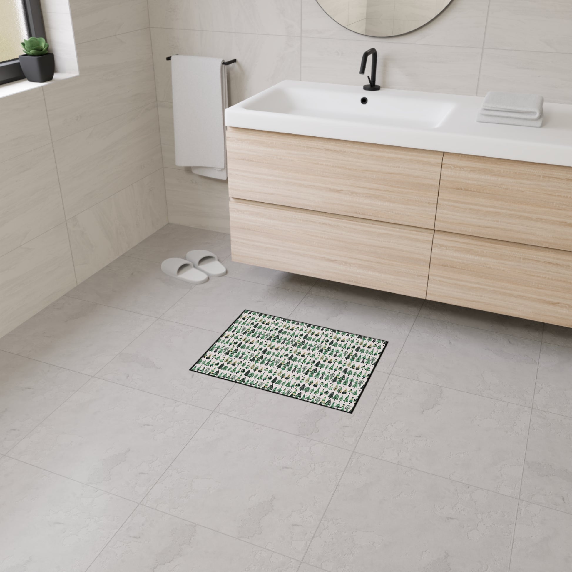 Mini Vintage Green Trees 18" x 24" Heavy Duty Floor Mat