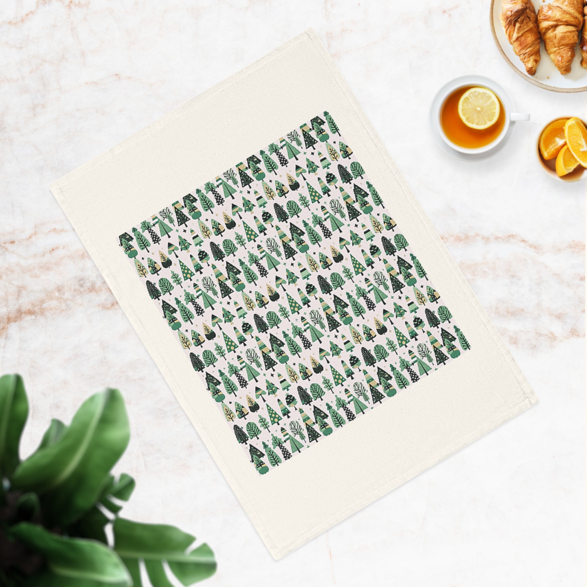 Mini Vintage Green Trees 19.6" x 27.5" Cotton Tea Towel