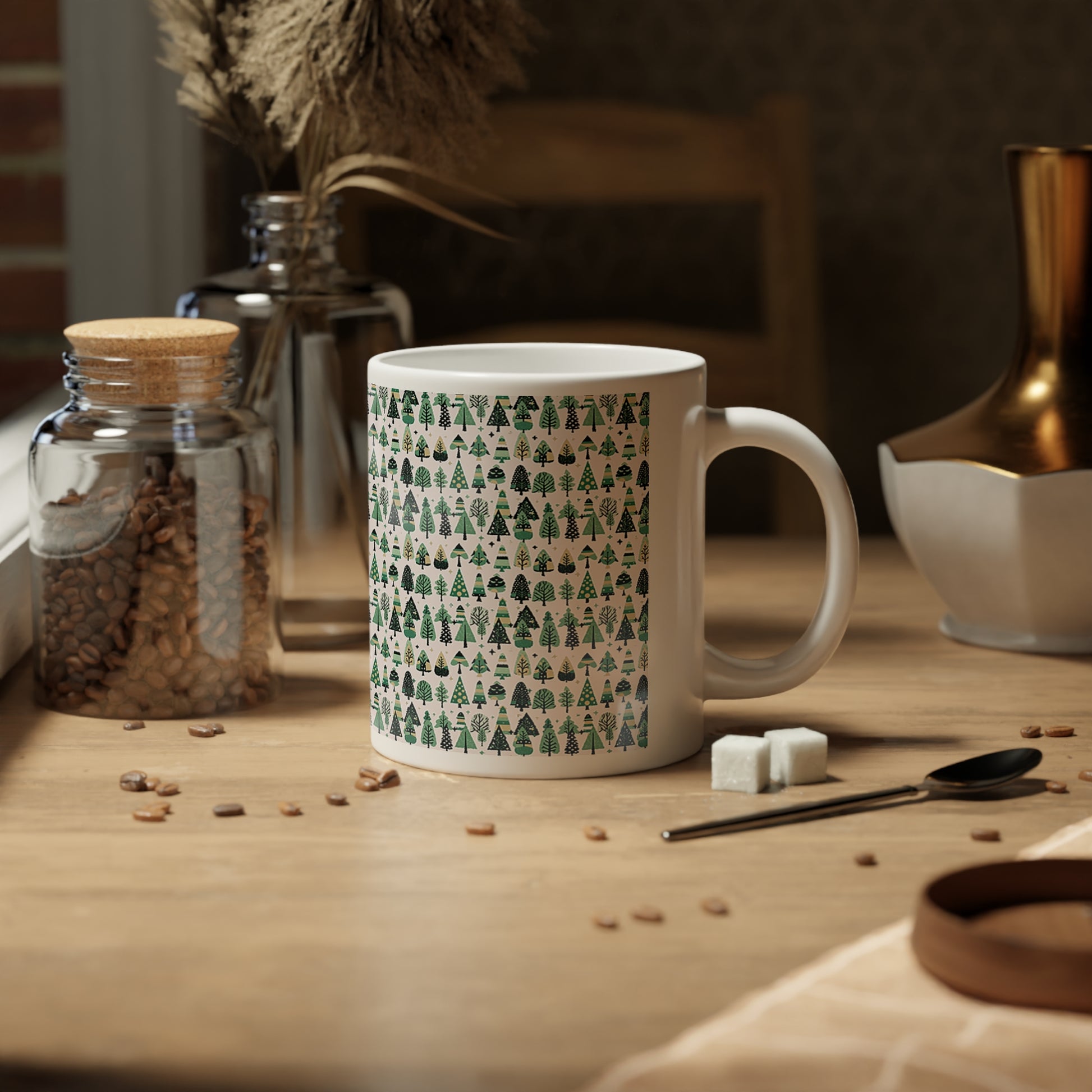 Mini Vintage Green Trees 20 oz White Glossy Jumbo Mug