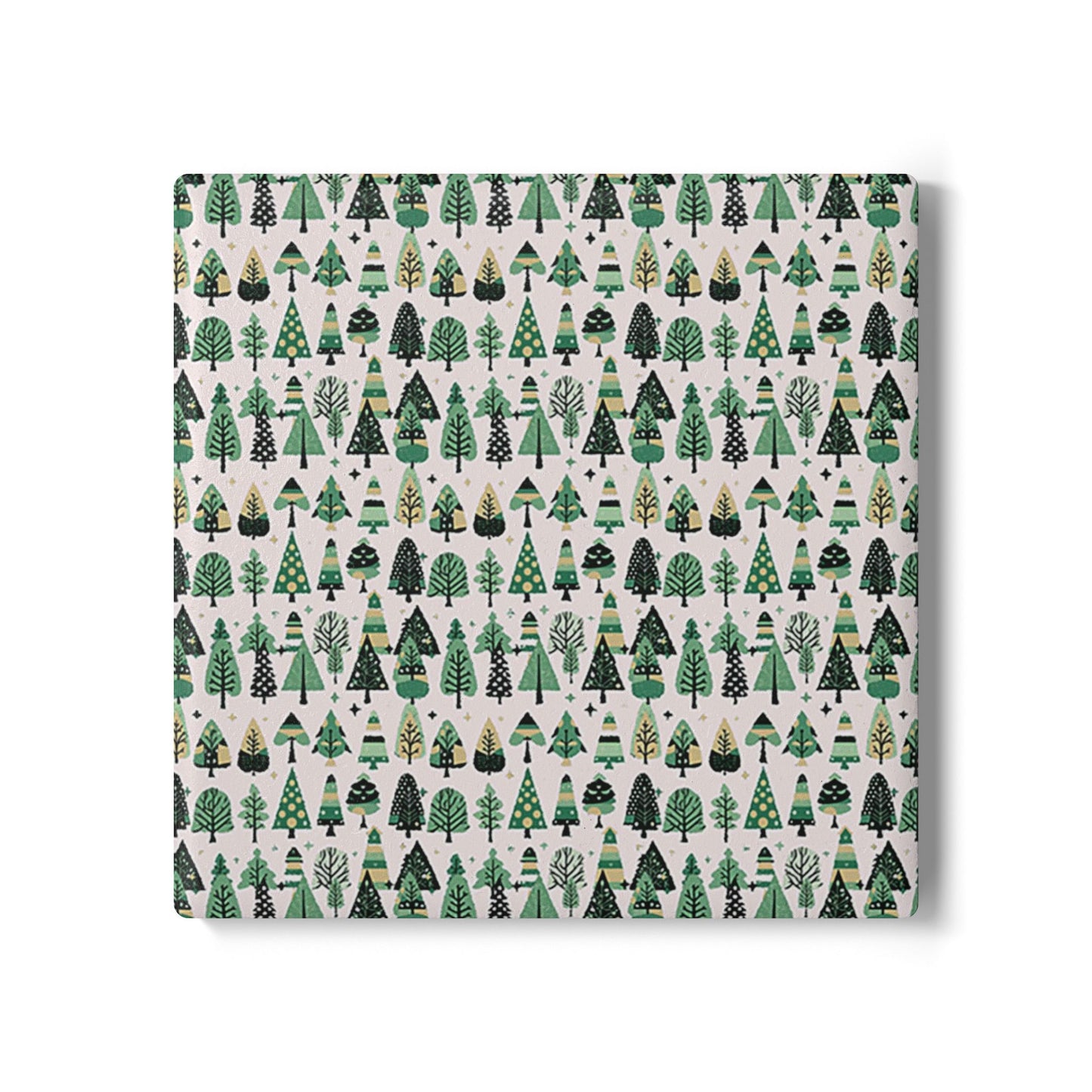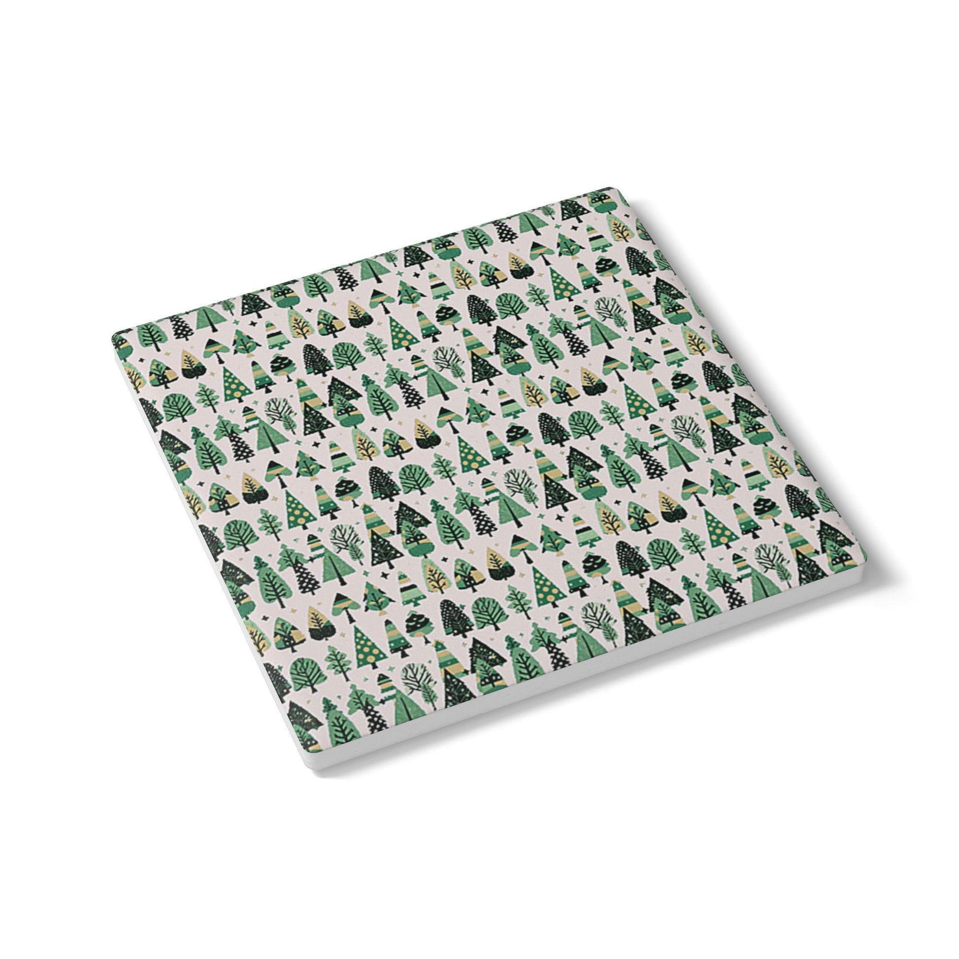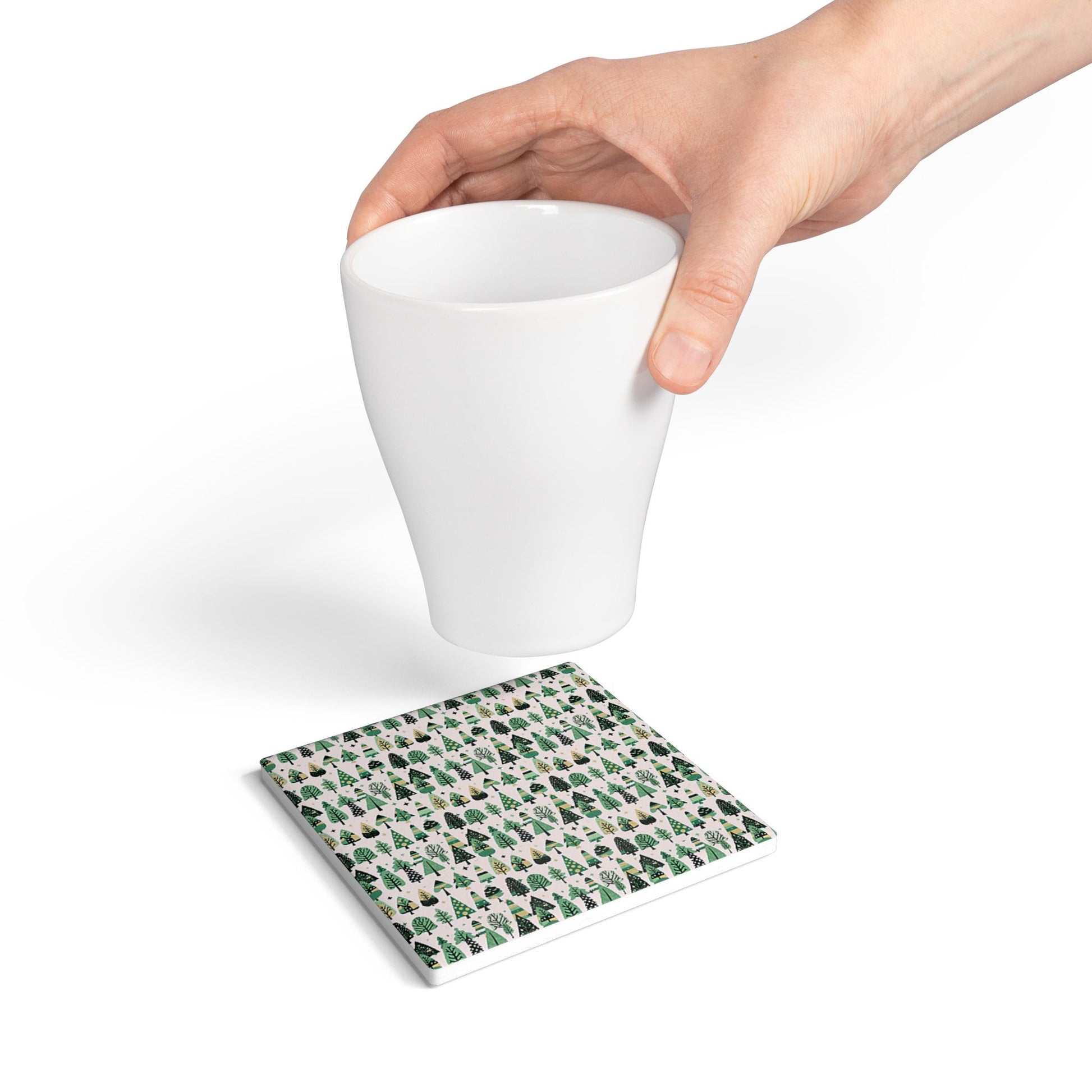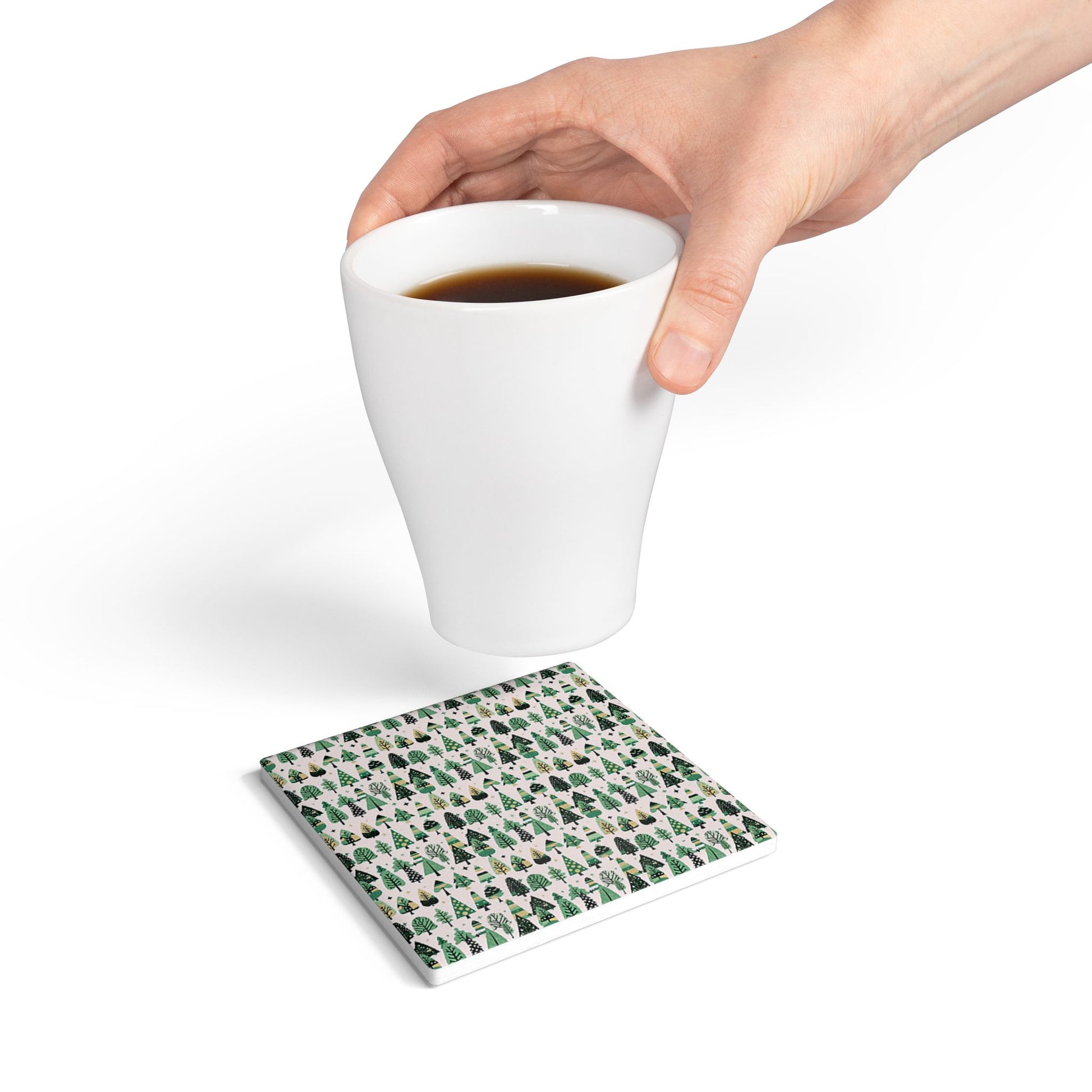 Mini Vintage Green Trees 4" x 4" Square Ceramic Coaster