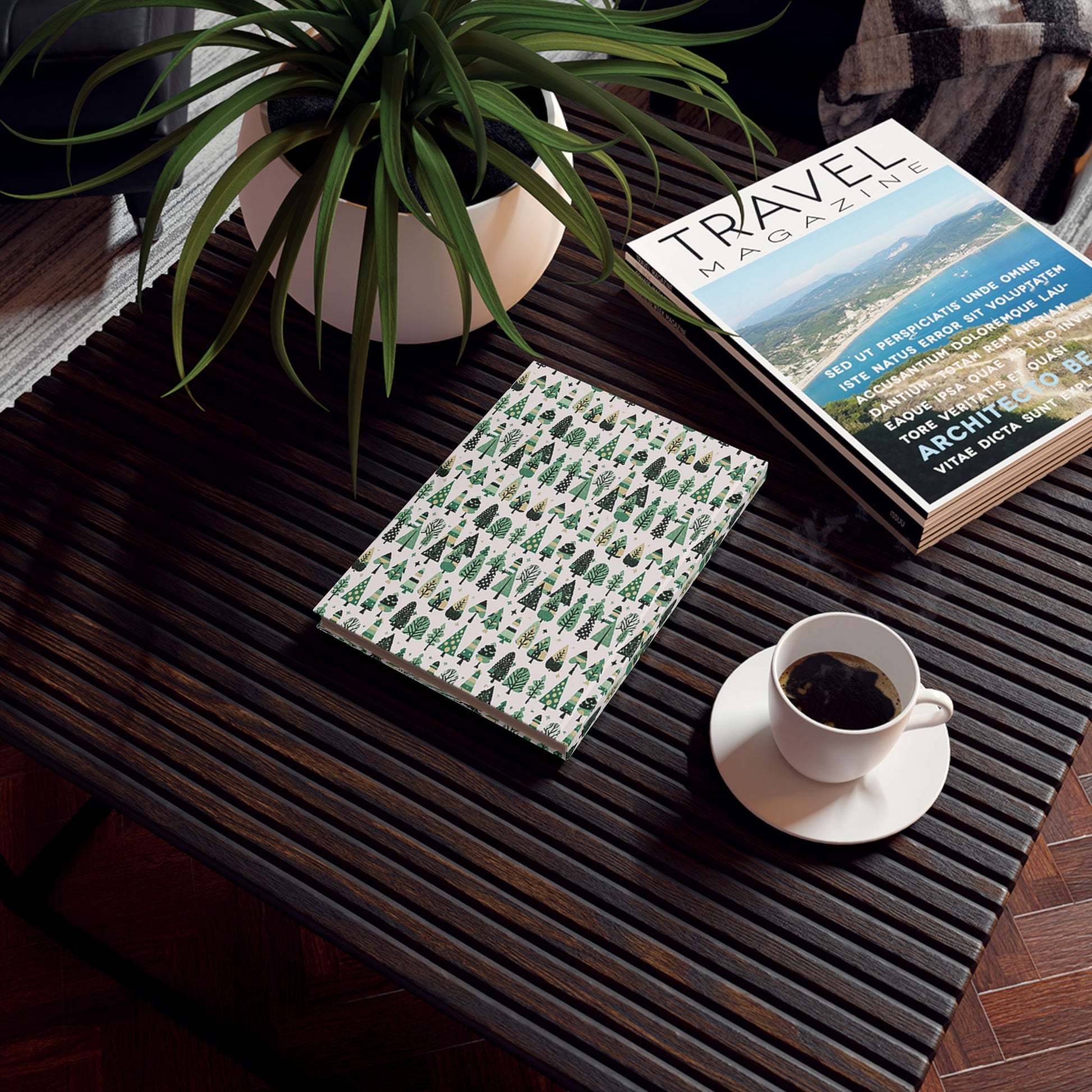 Mini Vintage Green Trees 5.2" x 7.4" Hard Backed Journal with 128 blank pages