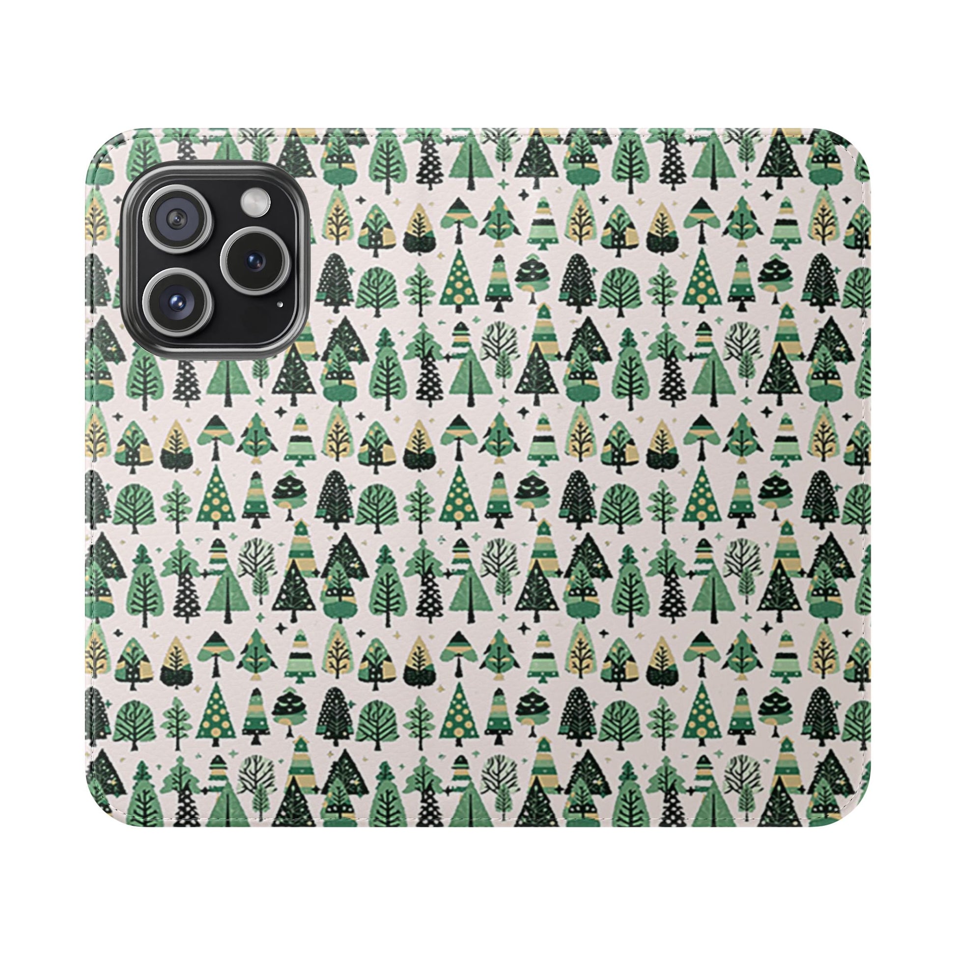 Mini Vintage Green Trees Flip Cases, Iphone 15 Pro