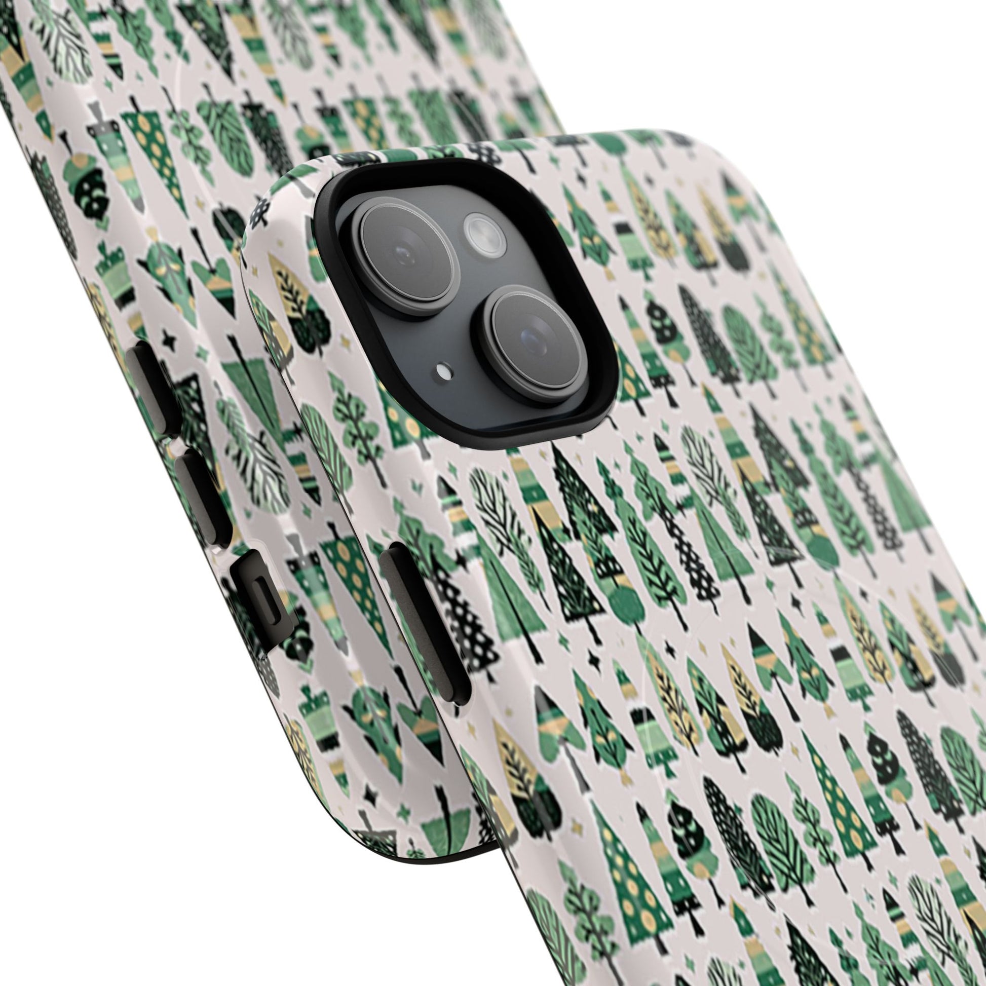 Mini Vintage Green Trees Iphone 15 Plus Tough Magnetic Cases
