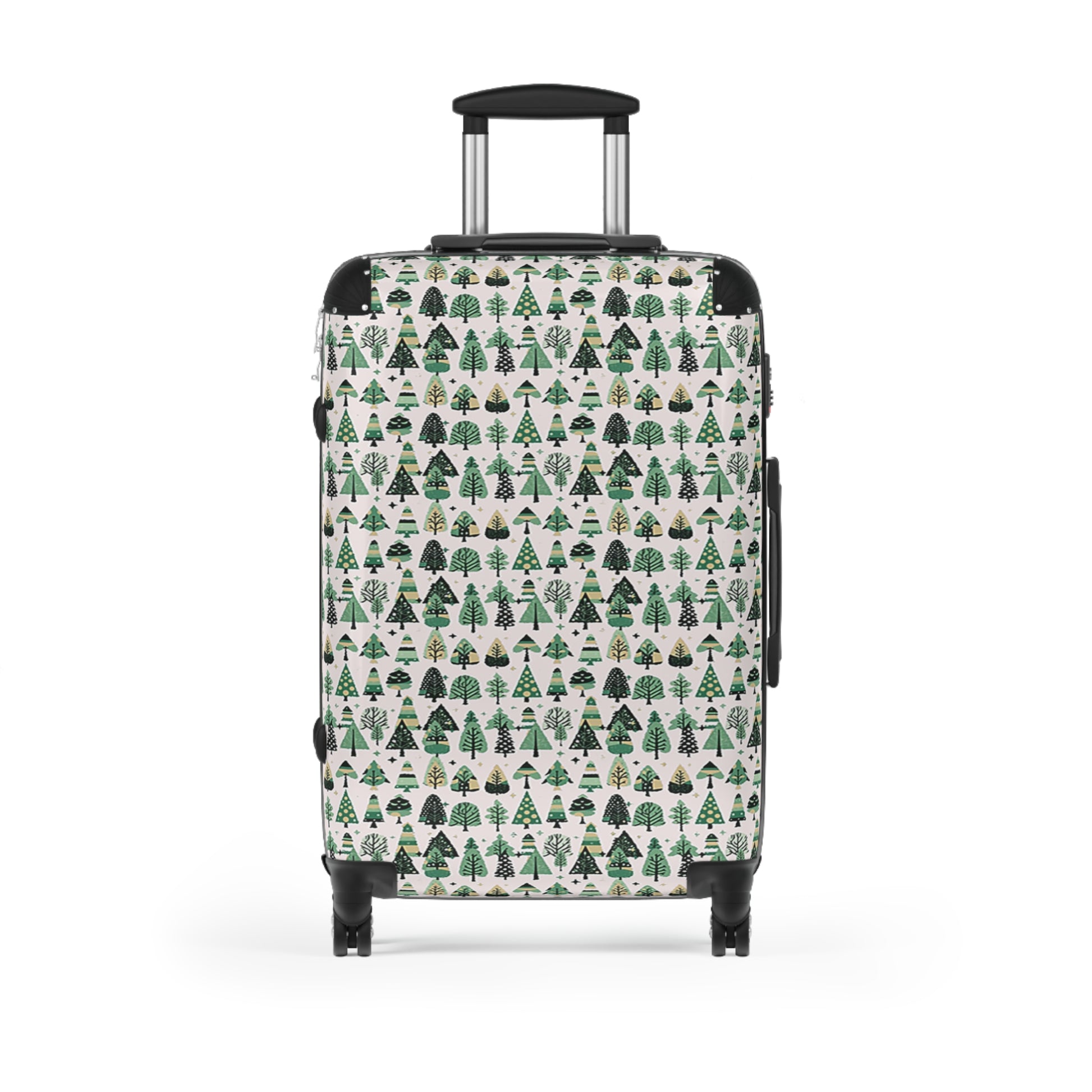 Mini Vintage Green Trees Medium Suitcase with built in lock, 4 double-wheels, telescopic handle, and ABS back hard-shell