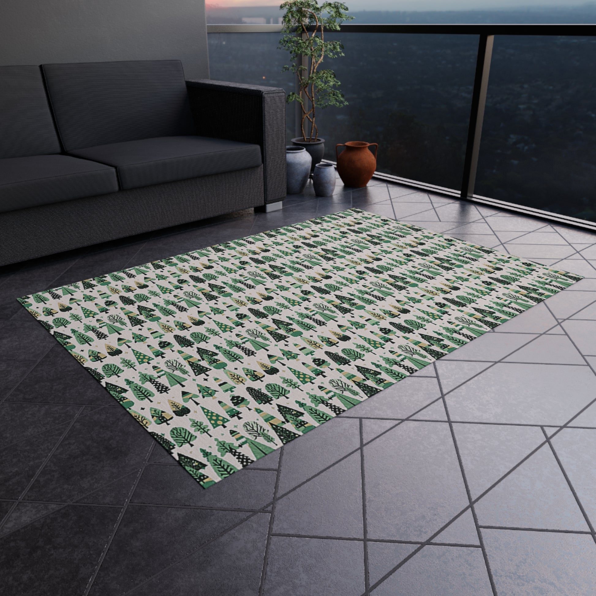 Mini Vintage Green Trees Outdoor Rug, 60" x 84"