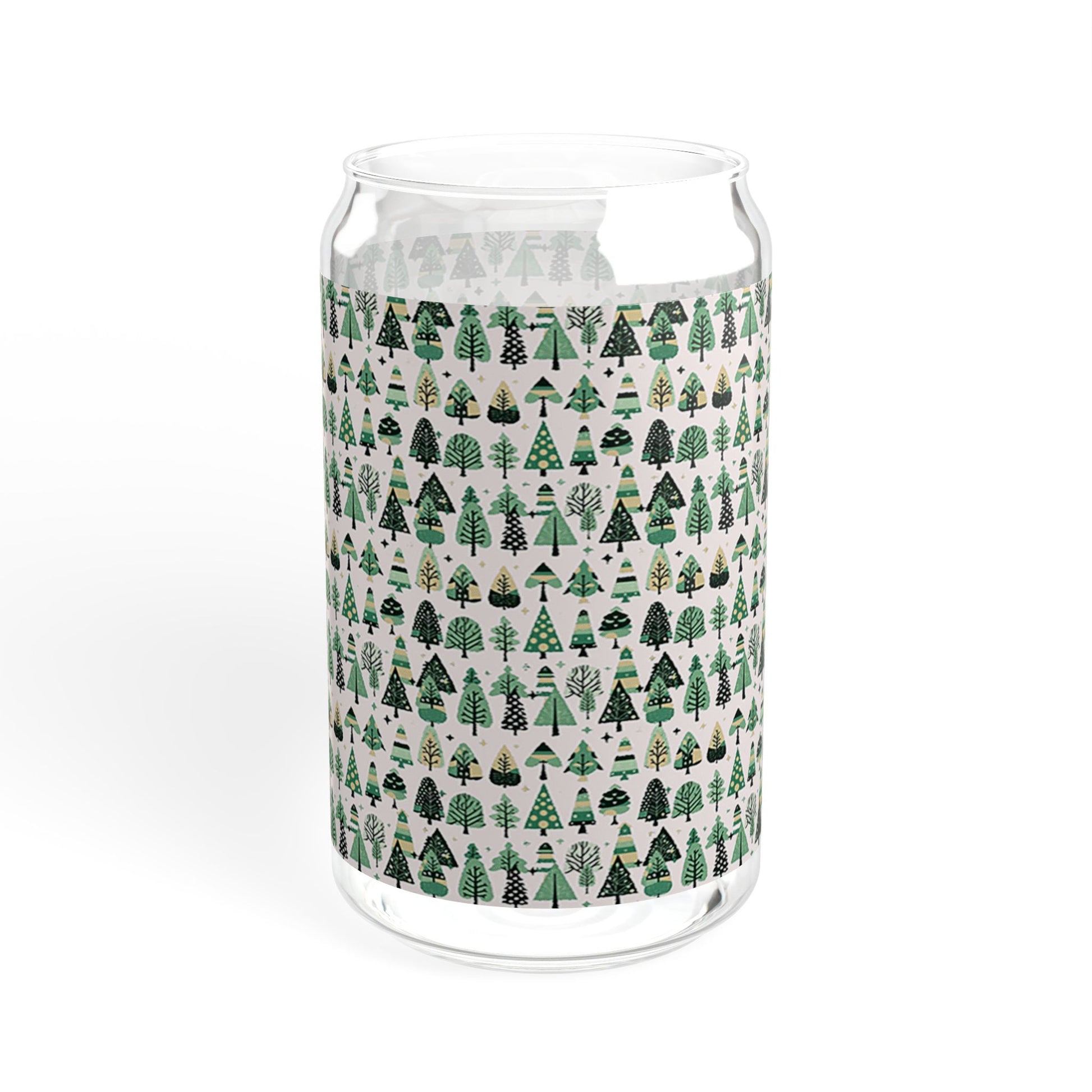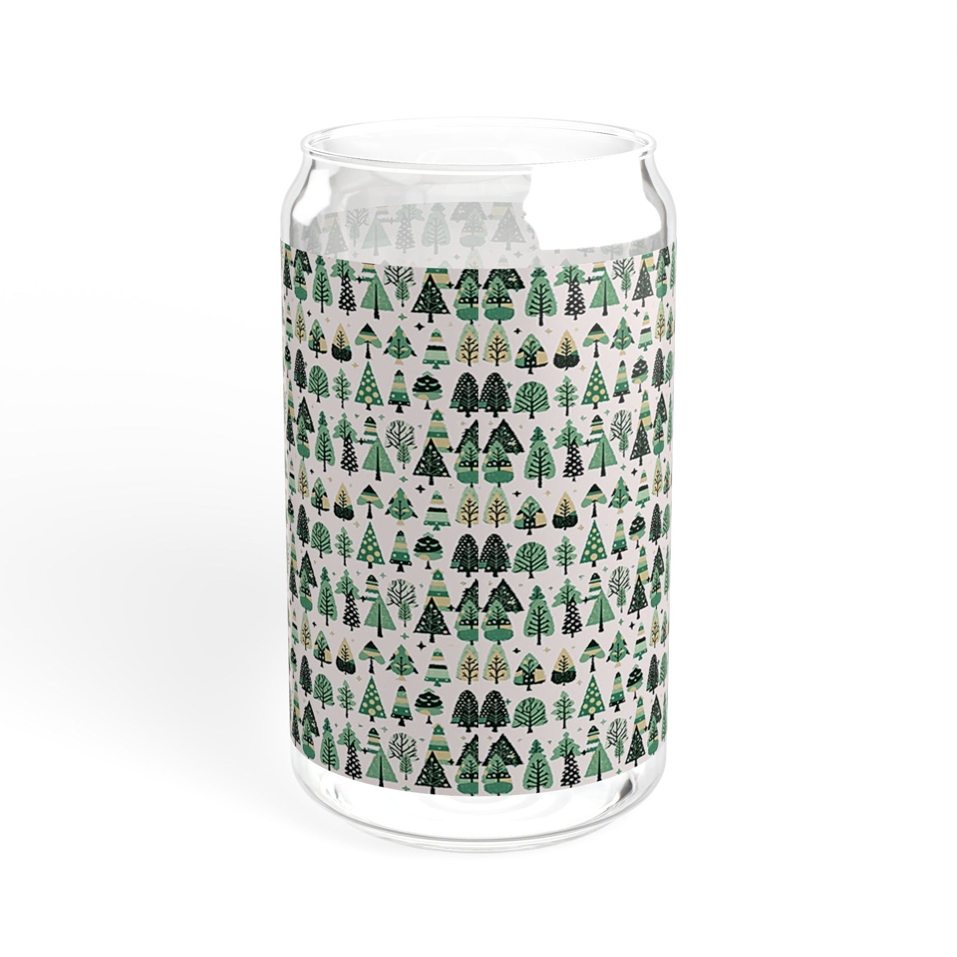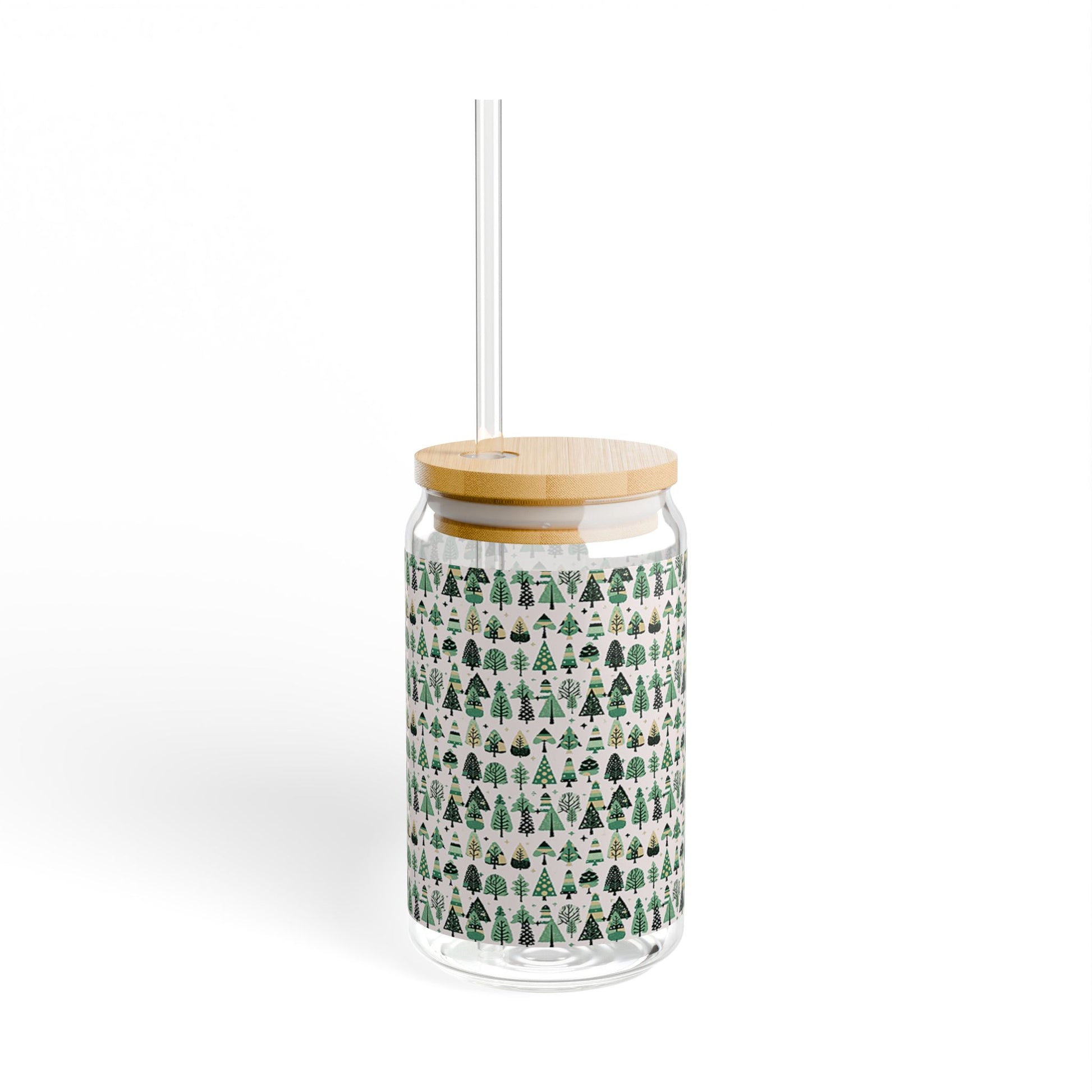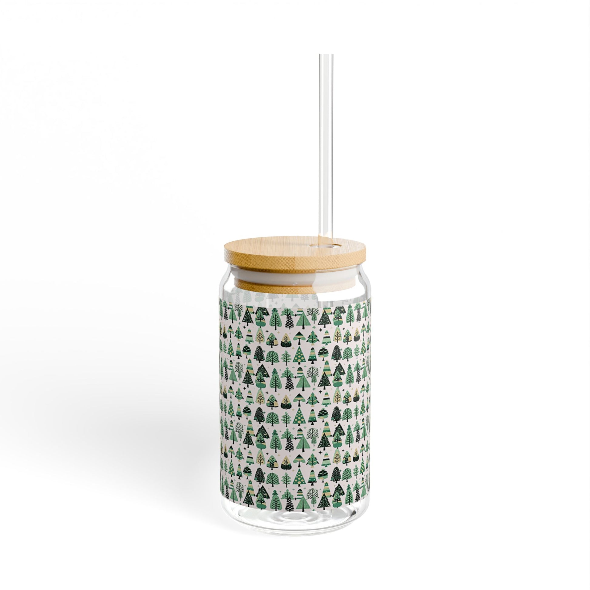 Mini Vintage Green Trees Sipper Glass, 16oz