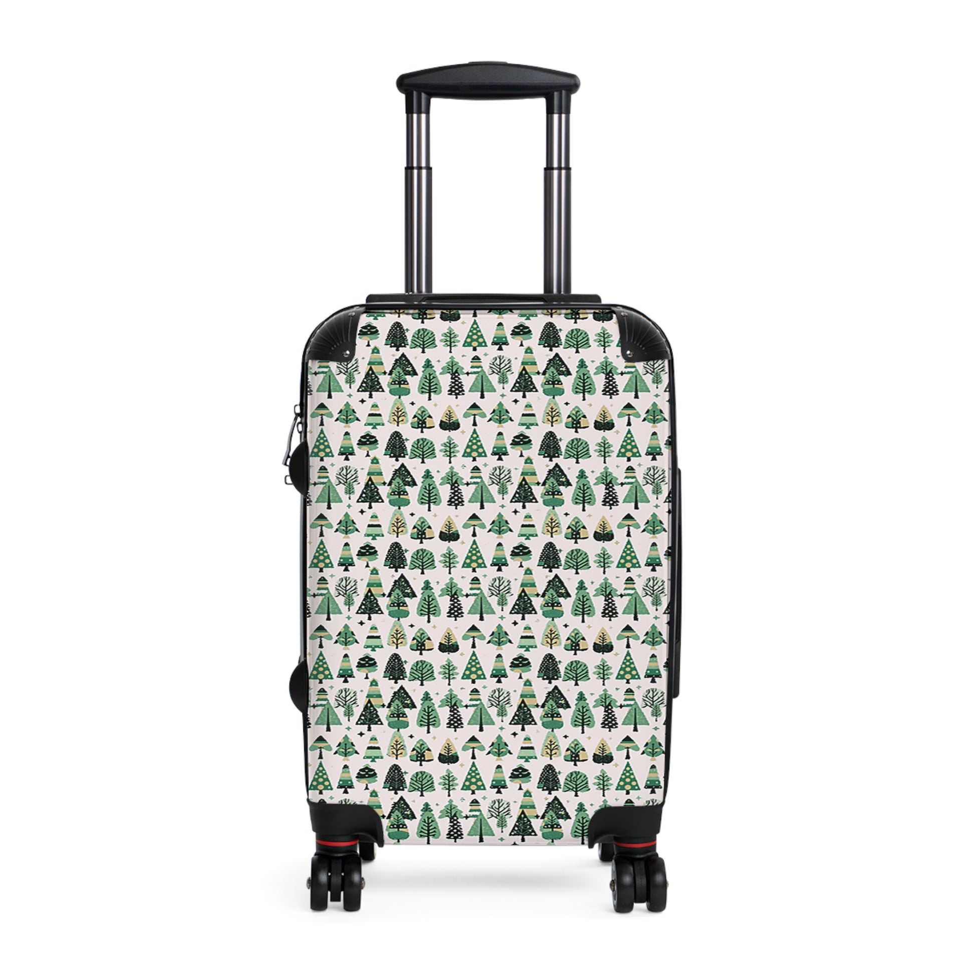 Mini Vintage Green Trees Small Suitcase with built in lock, 4 double-wheels, telescopic handle, and ABS back hard-shell