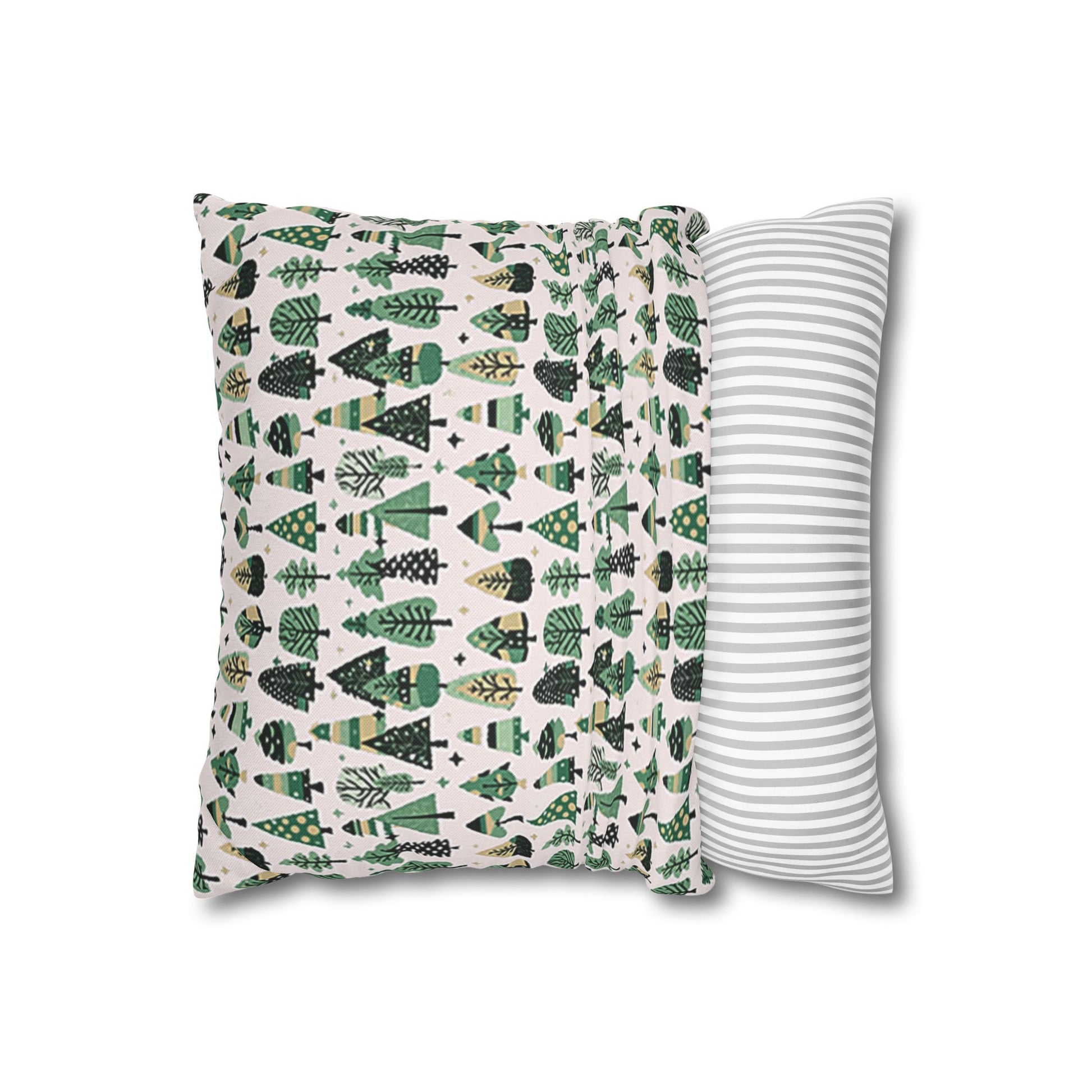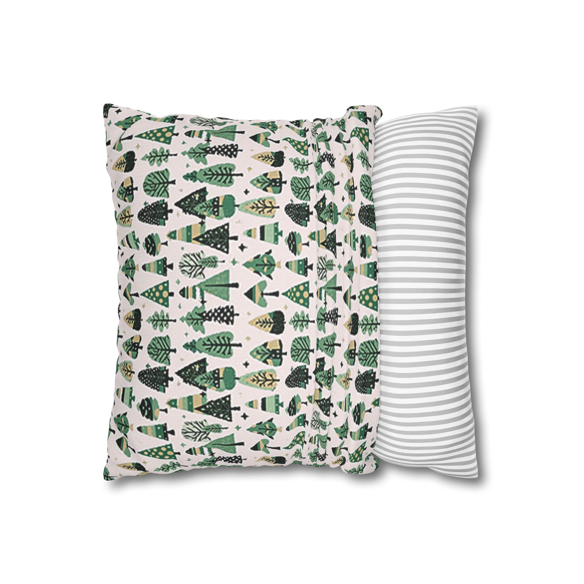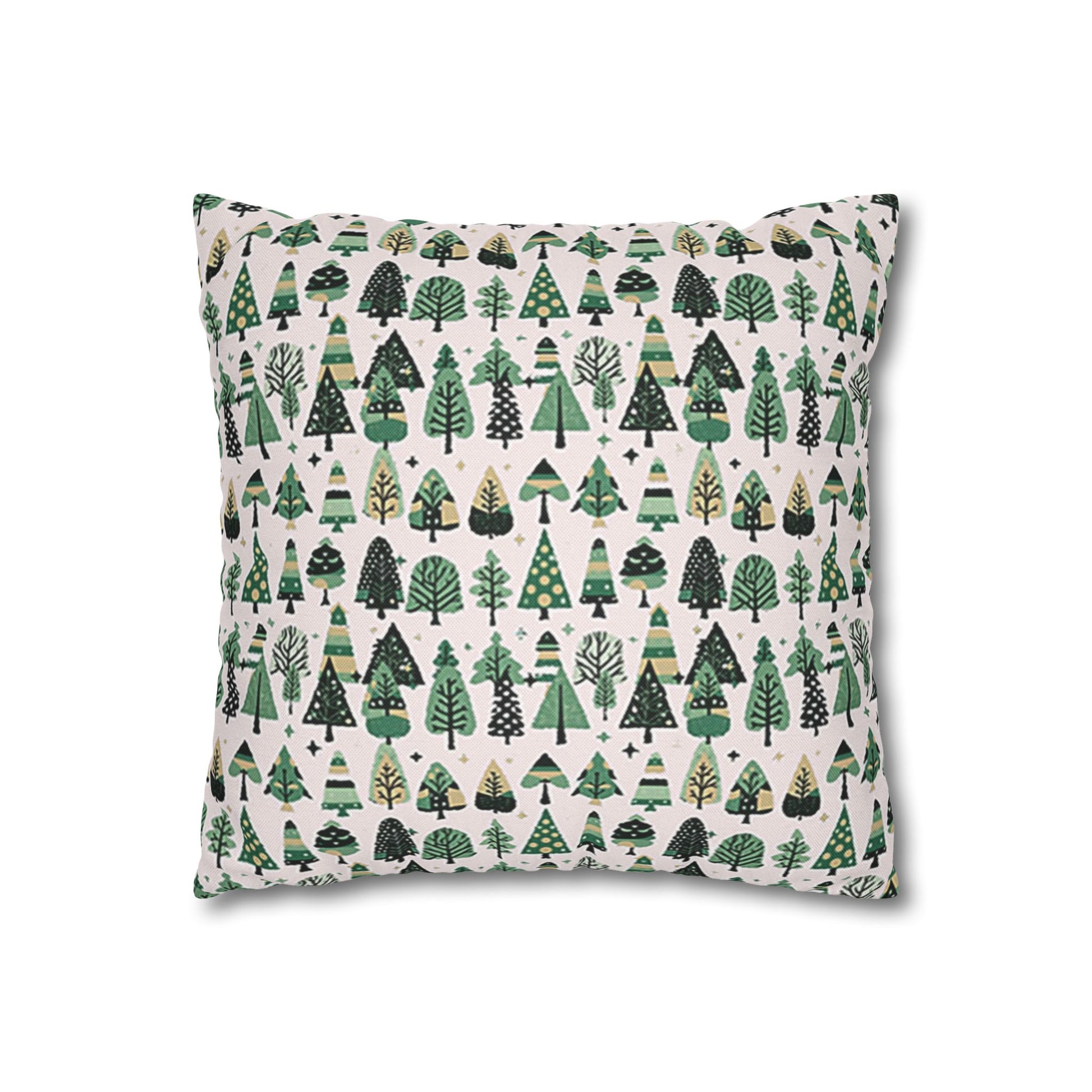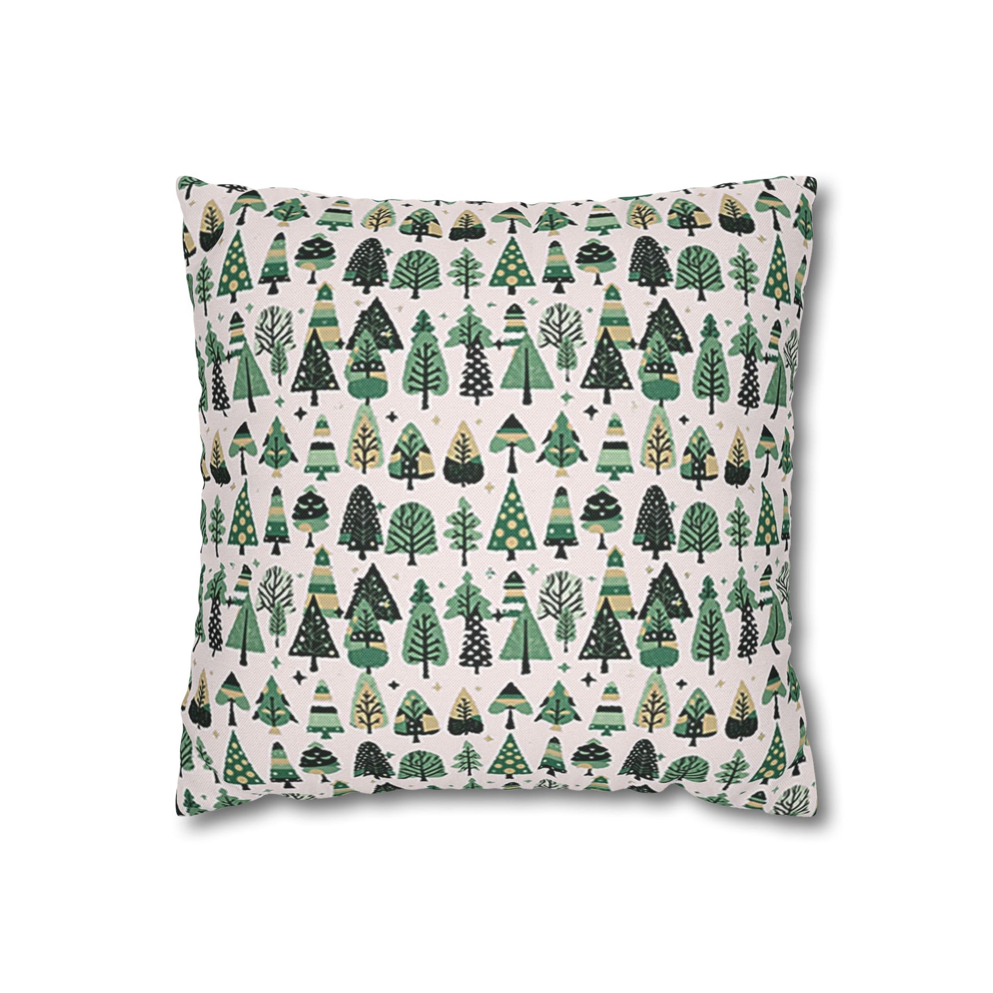 Mini Vintage Green Trees Spun Polyester Square Pillowcase, 14" x 14"