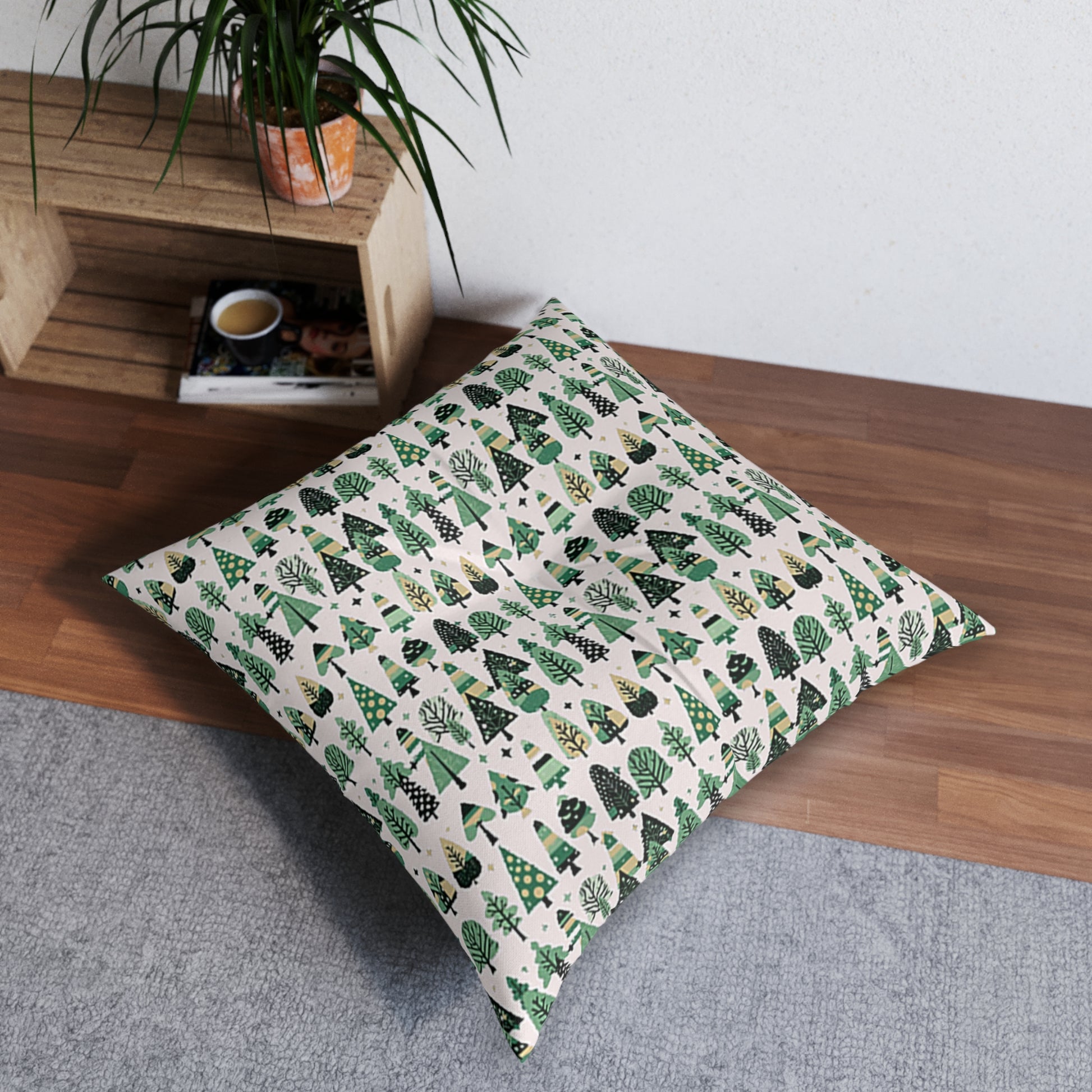 Mini Vintage Green Trees Tufted Floor Pillow, Square, 30' x 30'