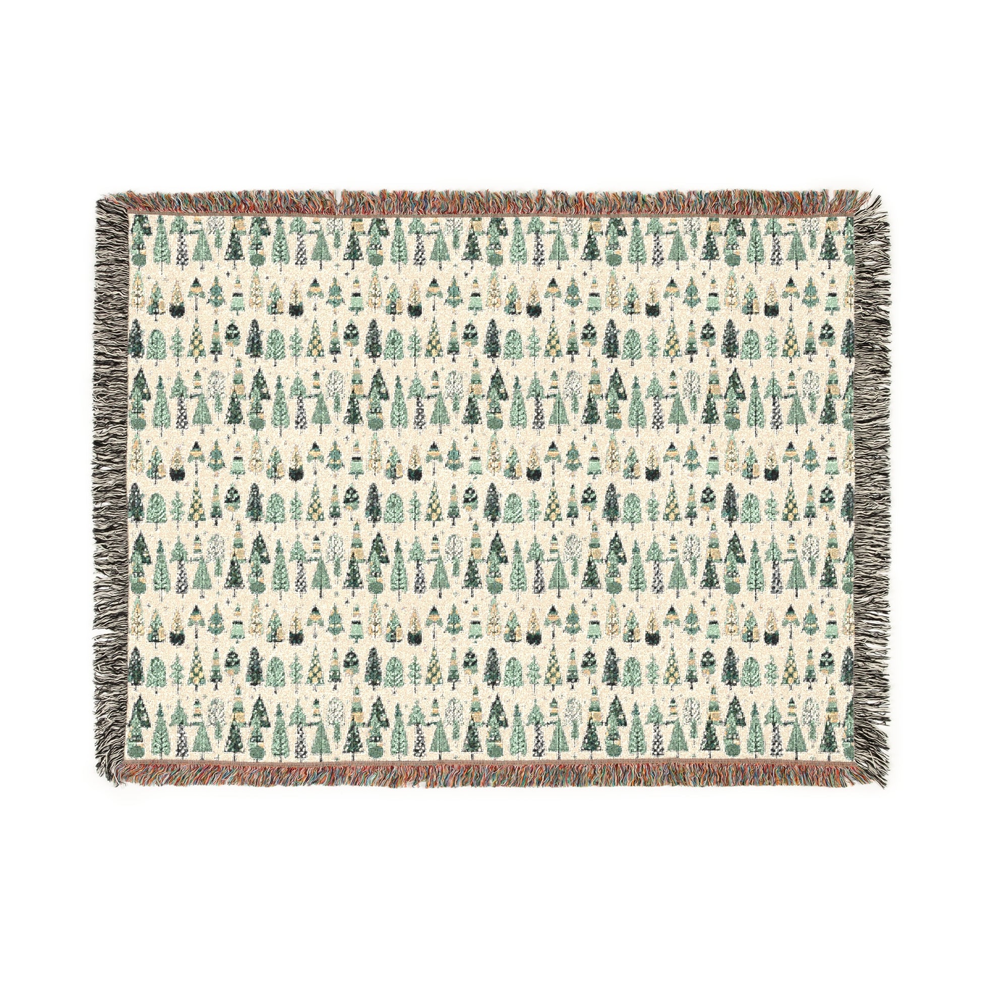Mini Vintage Green Trees Woven Blanket, 80" x 60"