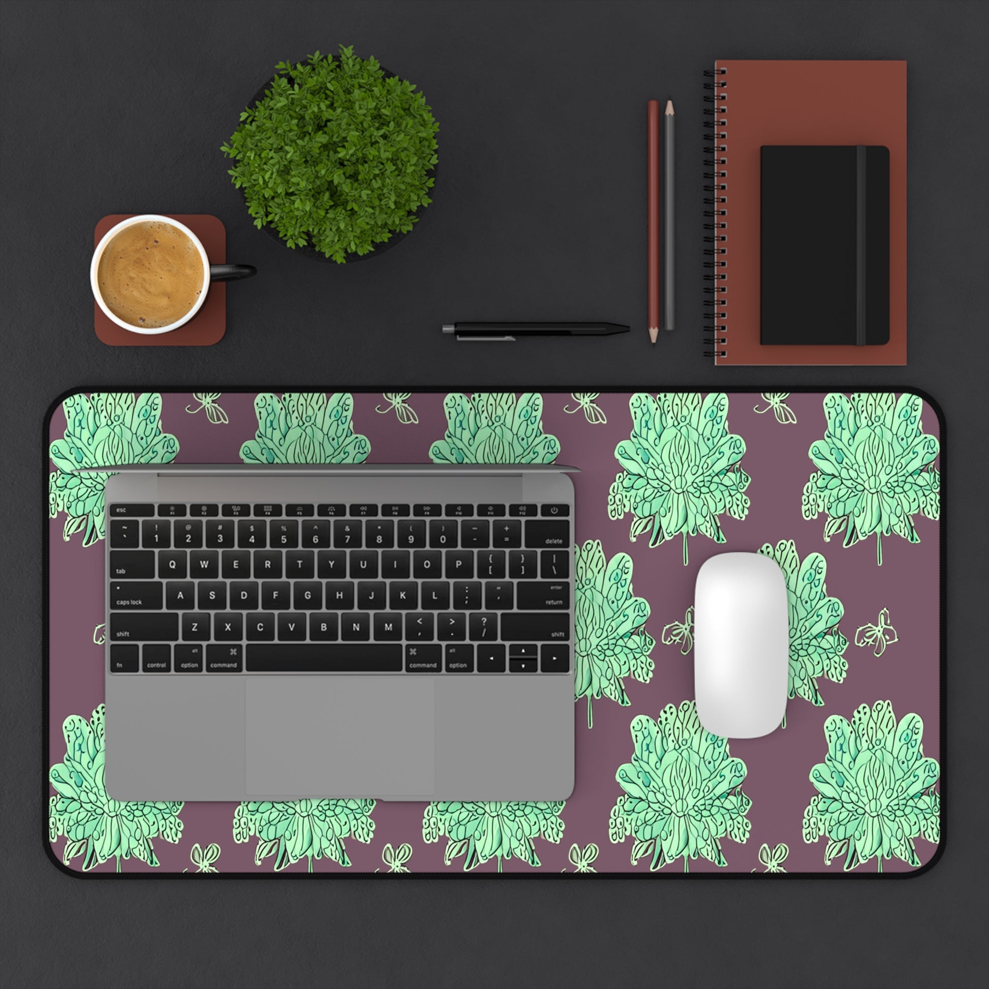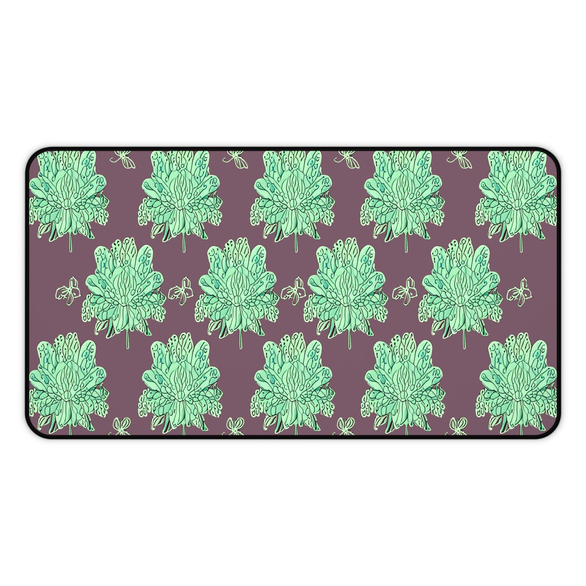 Mint Green Floral Butterflies 12" x 22" Desk Mat