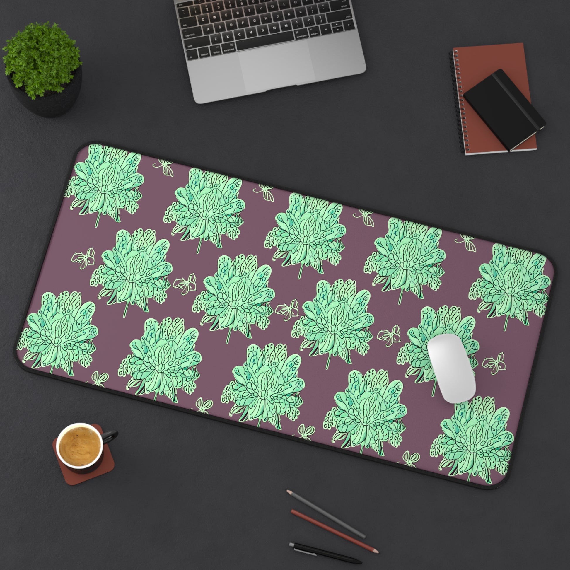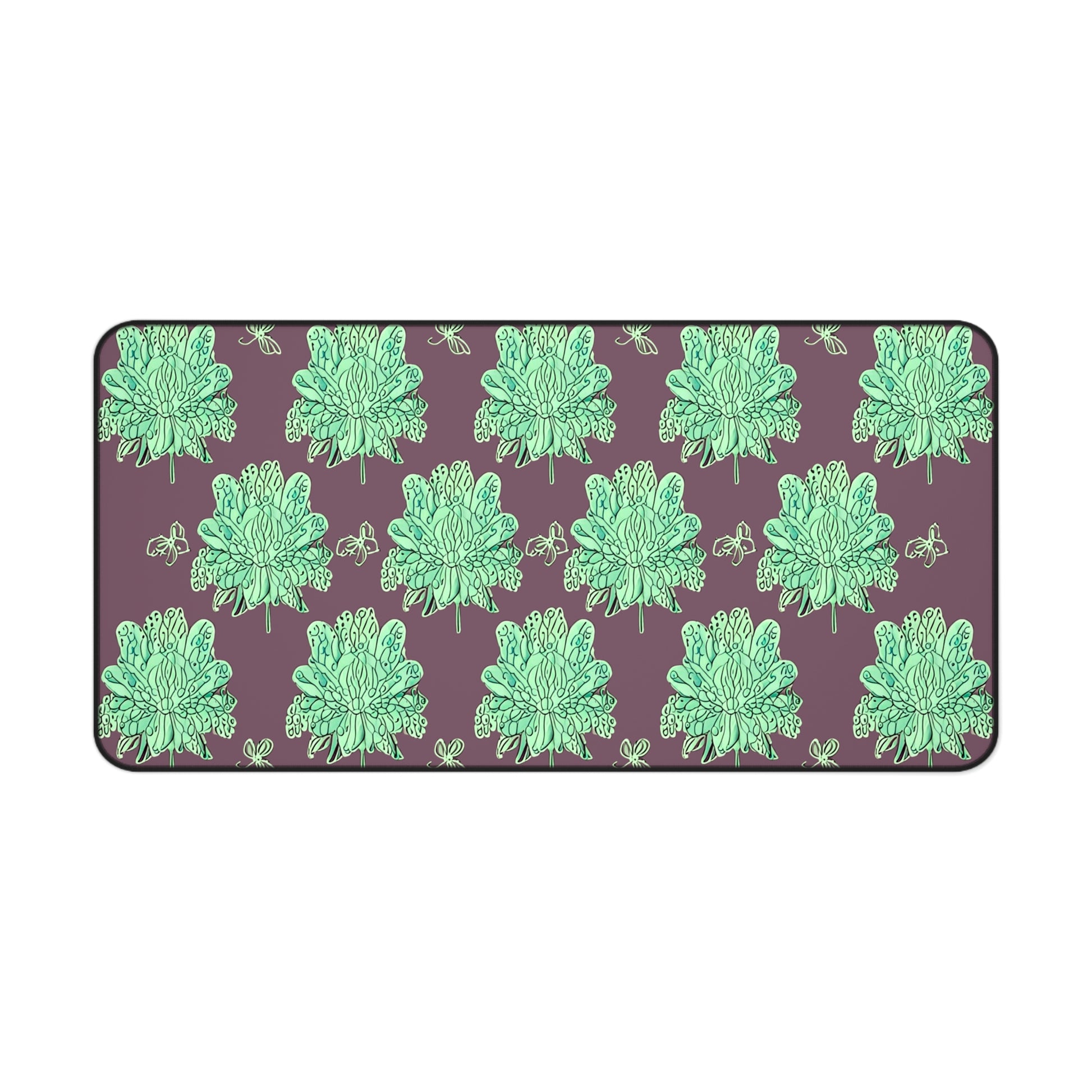 Mint Green Floral Butterflies 16" x 32" Desk Mat