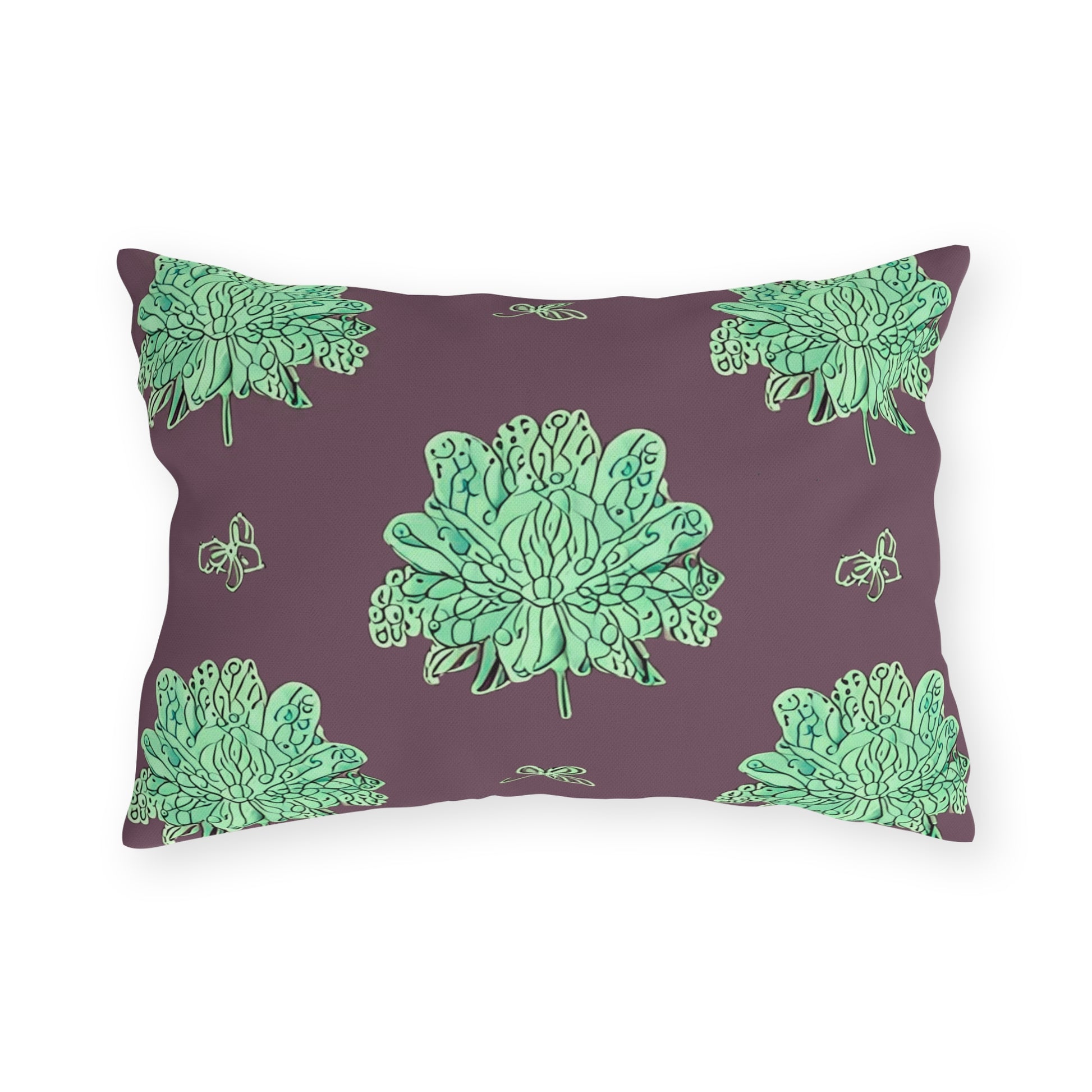 Mint Green Floral Butterflies 20" x 14" Outdoor Pillow
