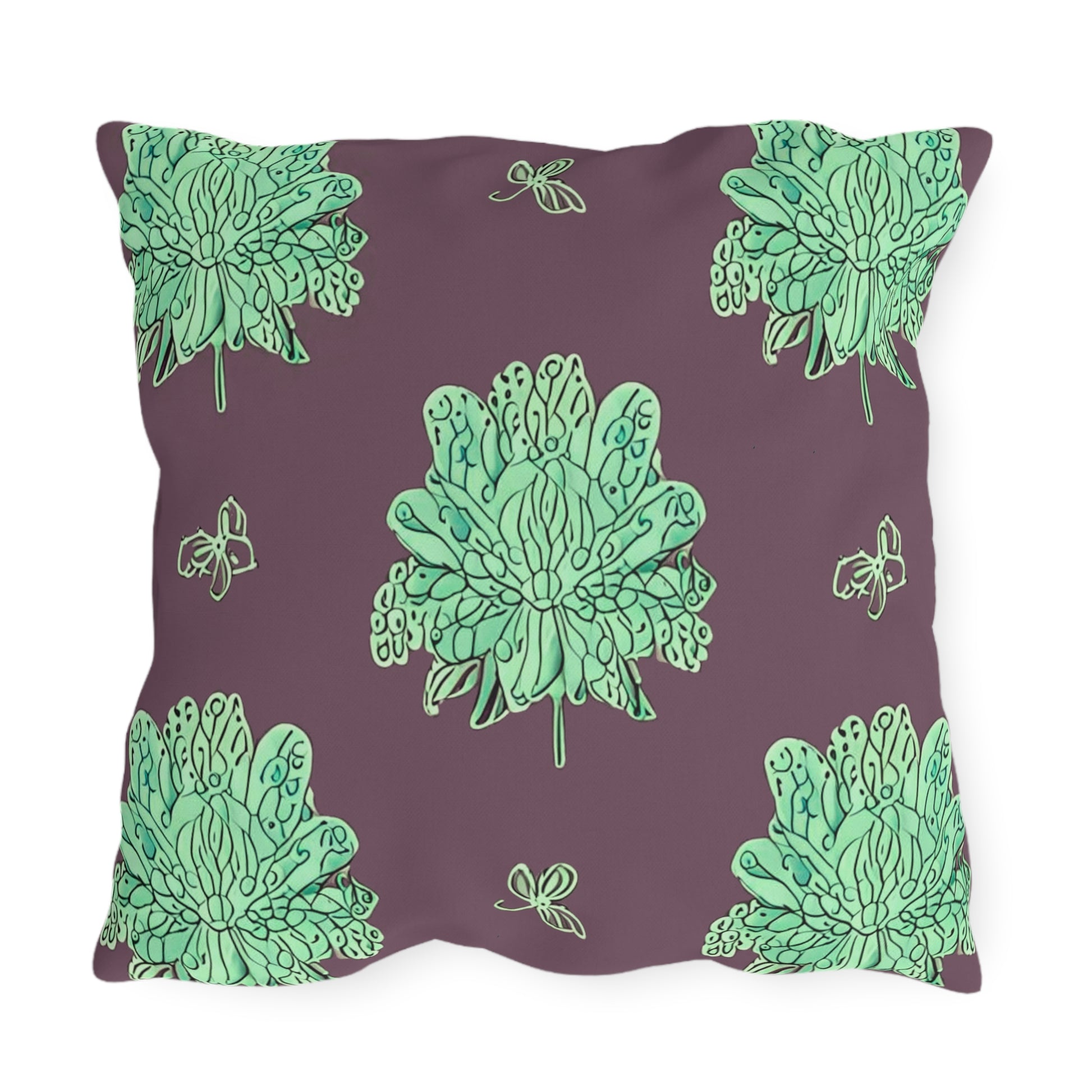 Mint Green Floral Butterflies 20" x 20" Outdoor Pillow