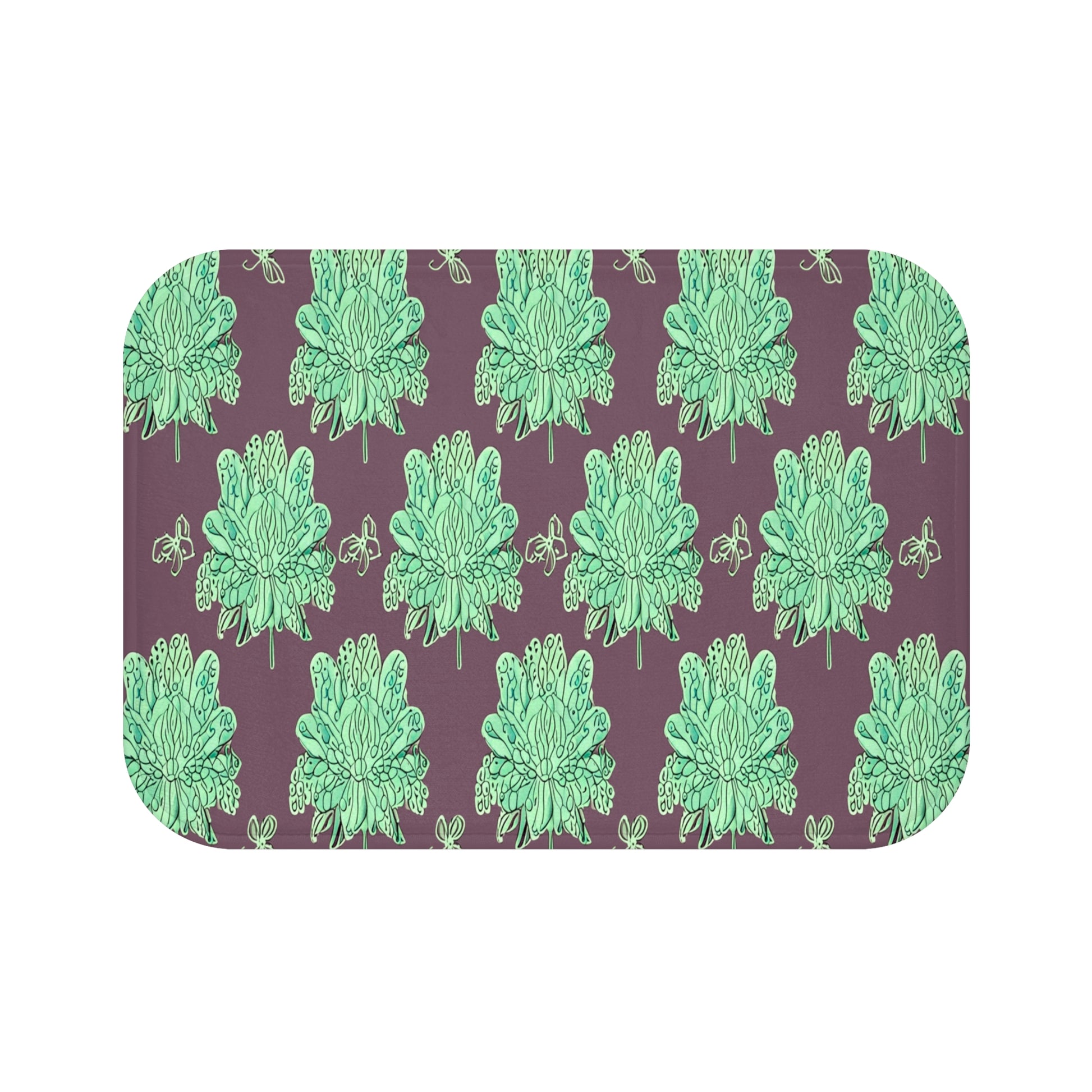 Mint Green Floral Butterflies 24" x 17" Bath Mat