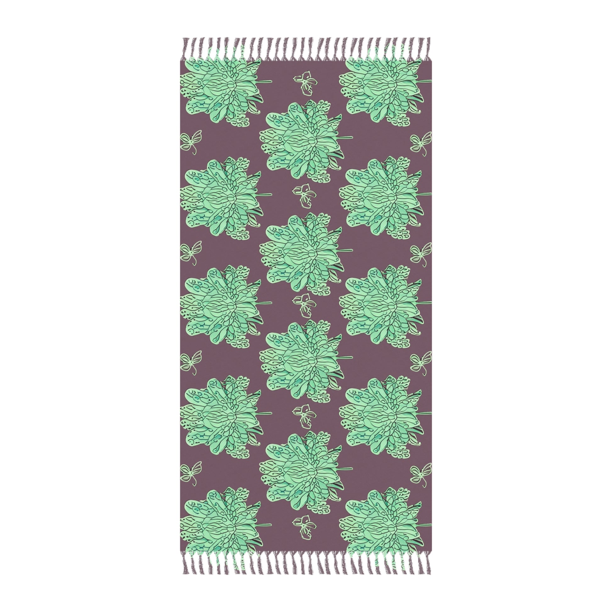 Mint Green Floral Butterflies 38" × 81" Boho Beach Cloth