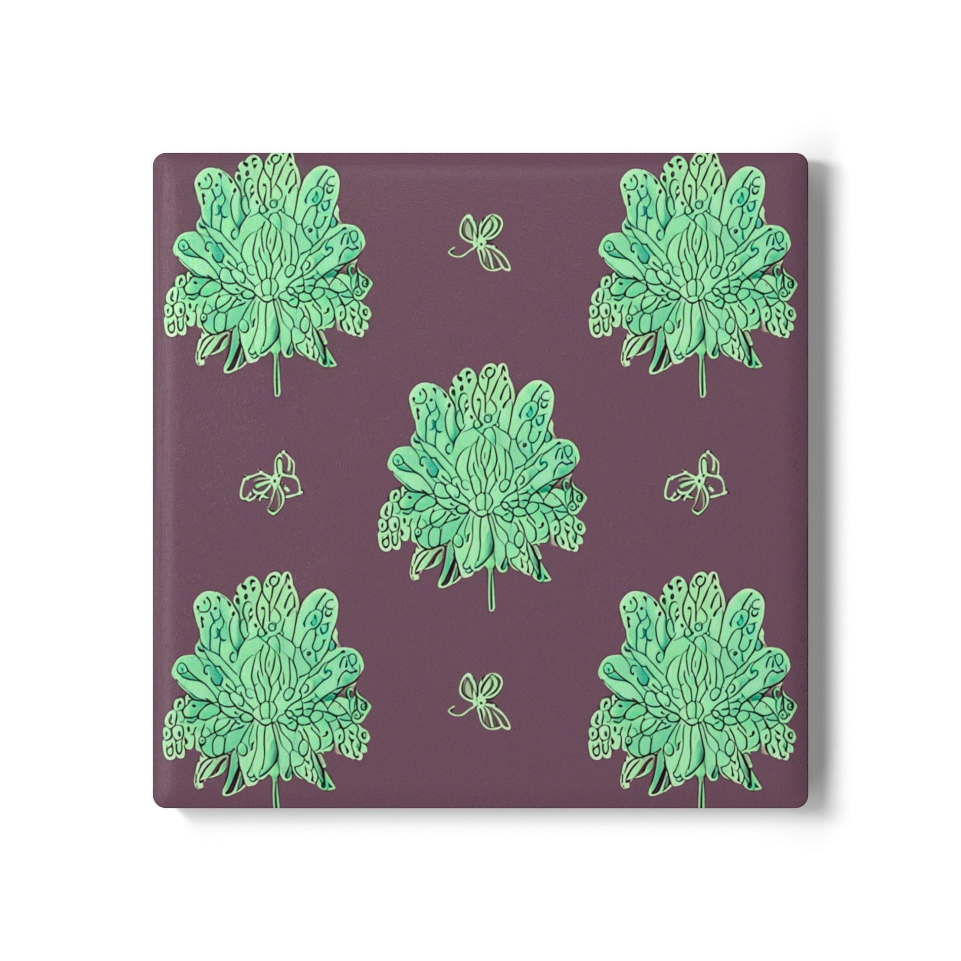 Mint Green Floral Butterflies 4" x 4" Square Ceramic Coaster