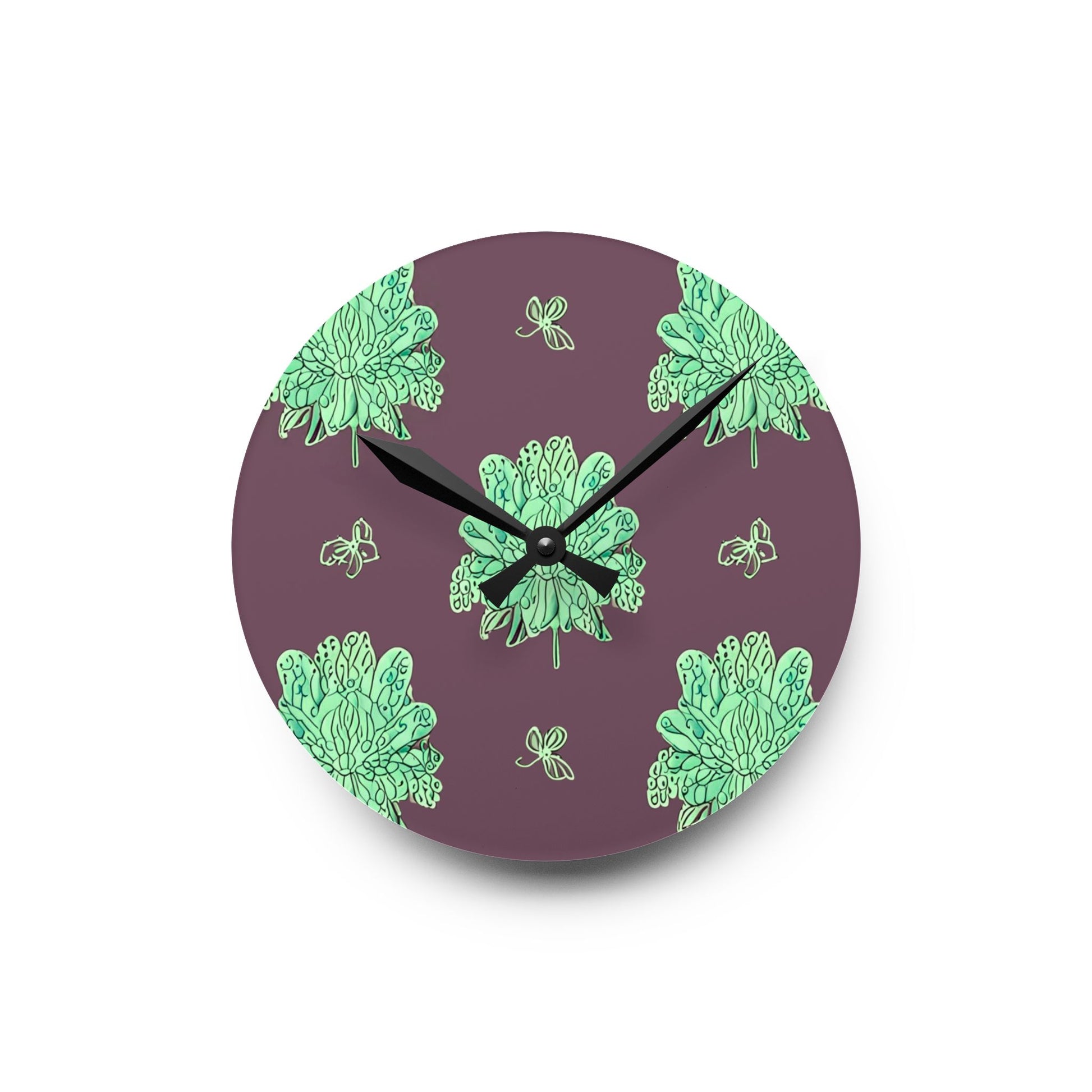 Mint Green Floral Butterflies Acrylic Round Wall Clock, 8" x 8"