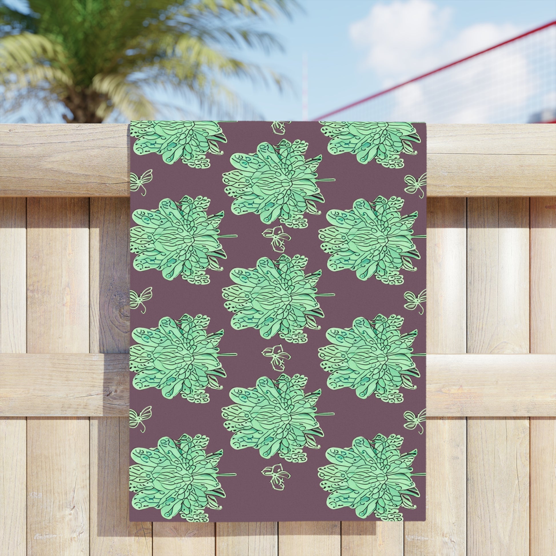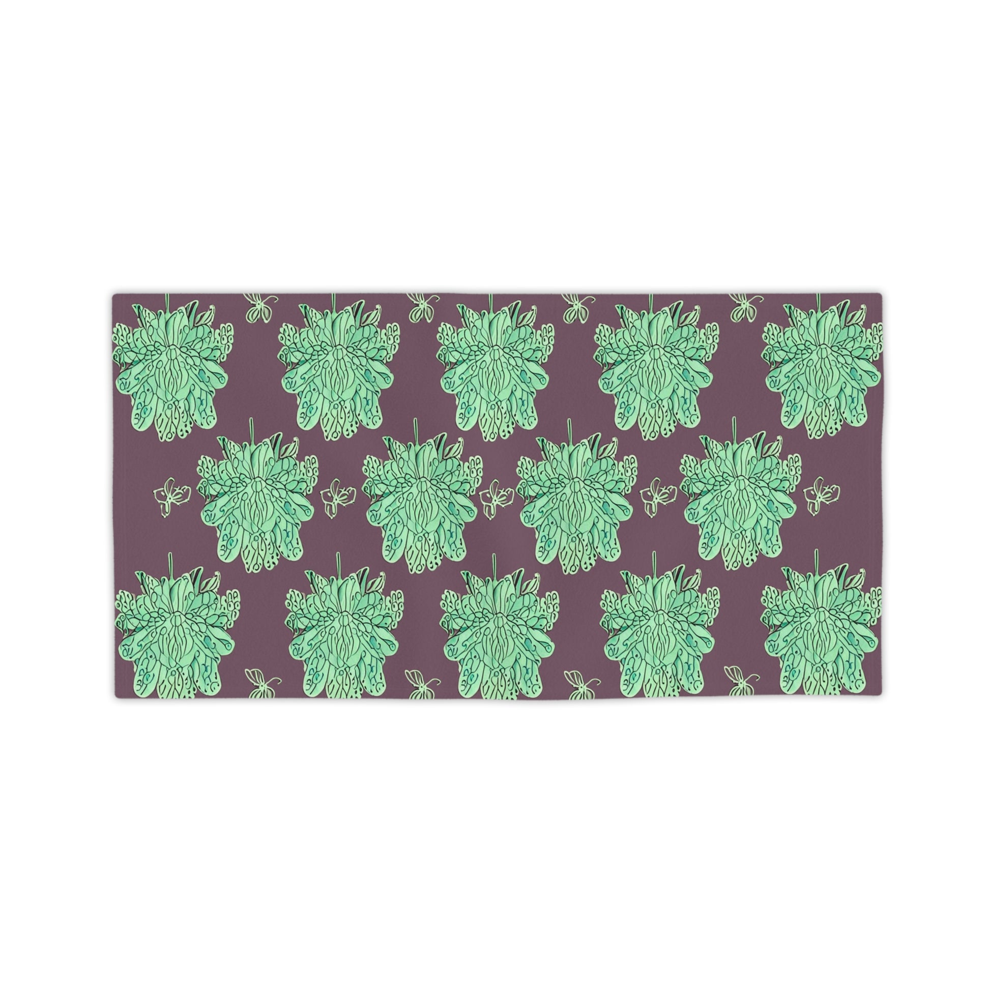 Mint Green Floral Butterflies Beach Towel, 24" x 44"