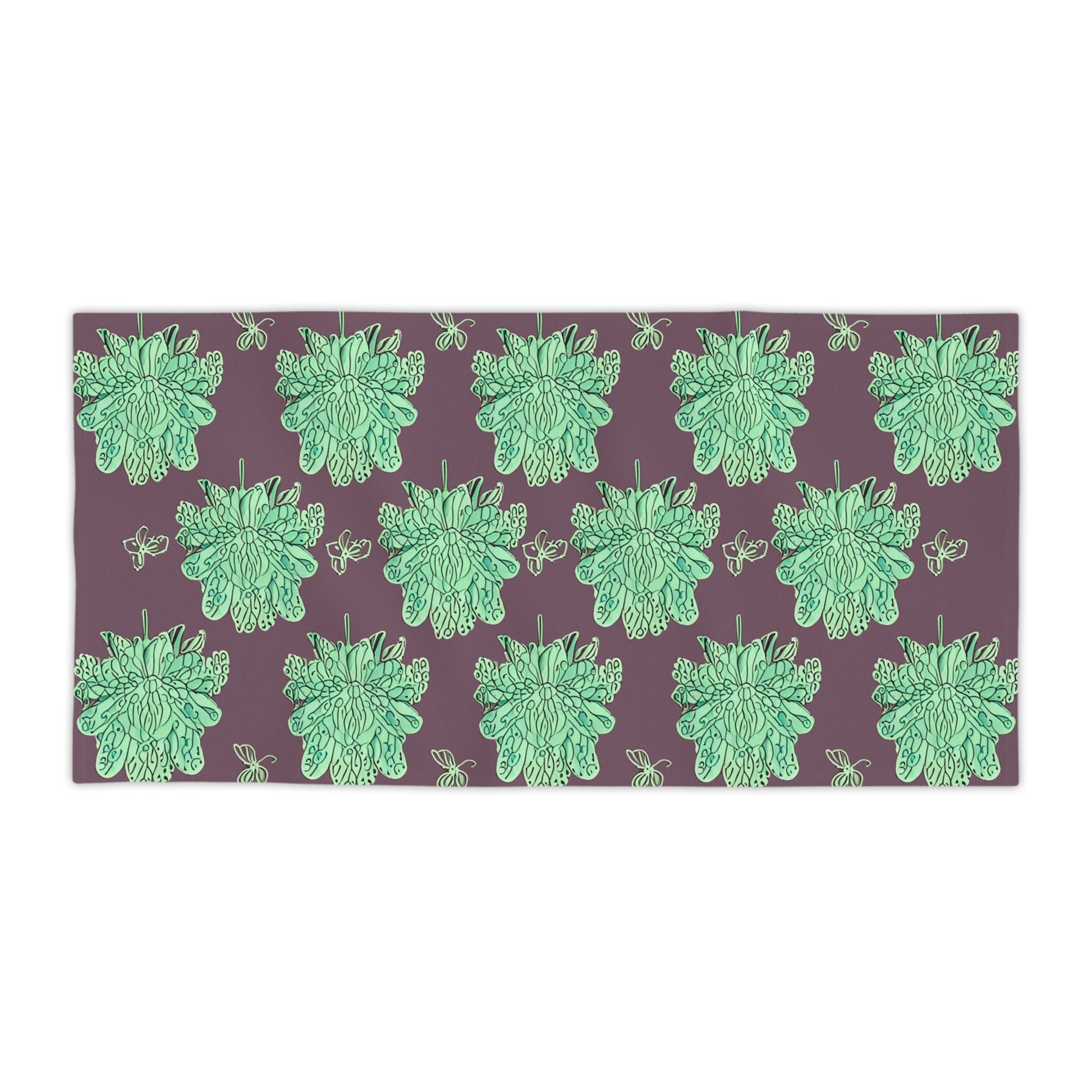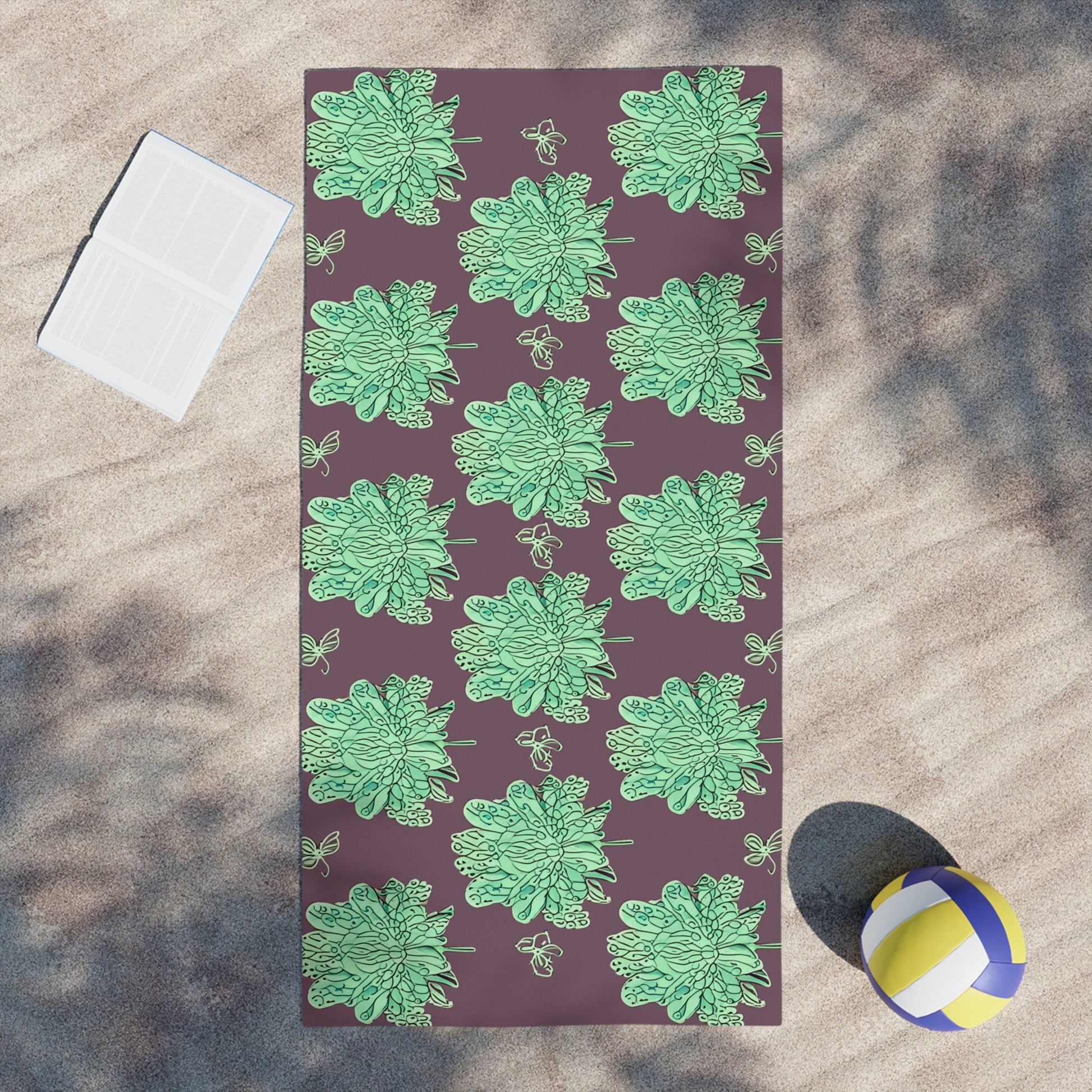 Mint Green Floral Butterflies Beach Towel, 30" x 60"