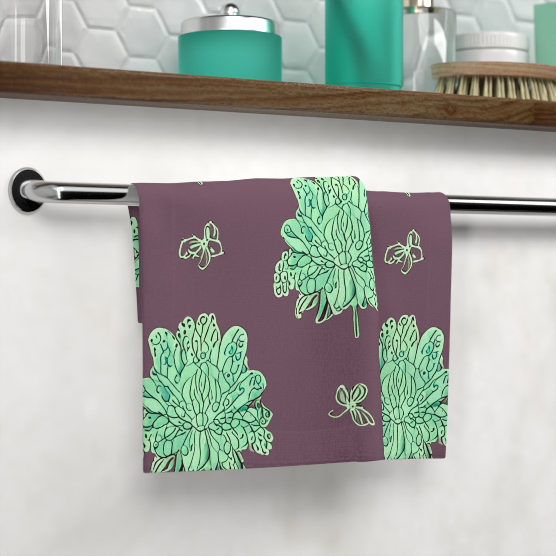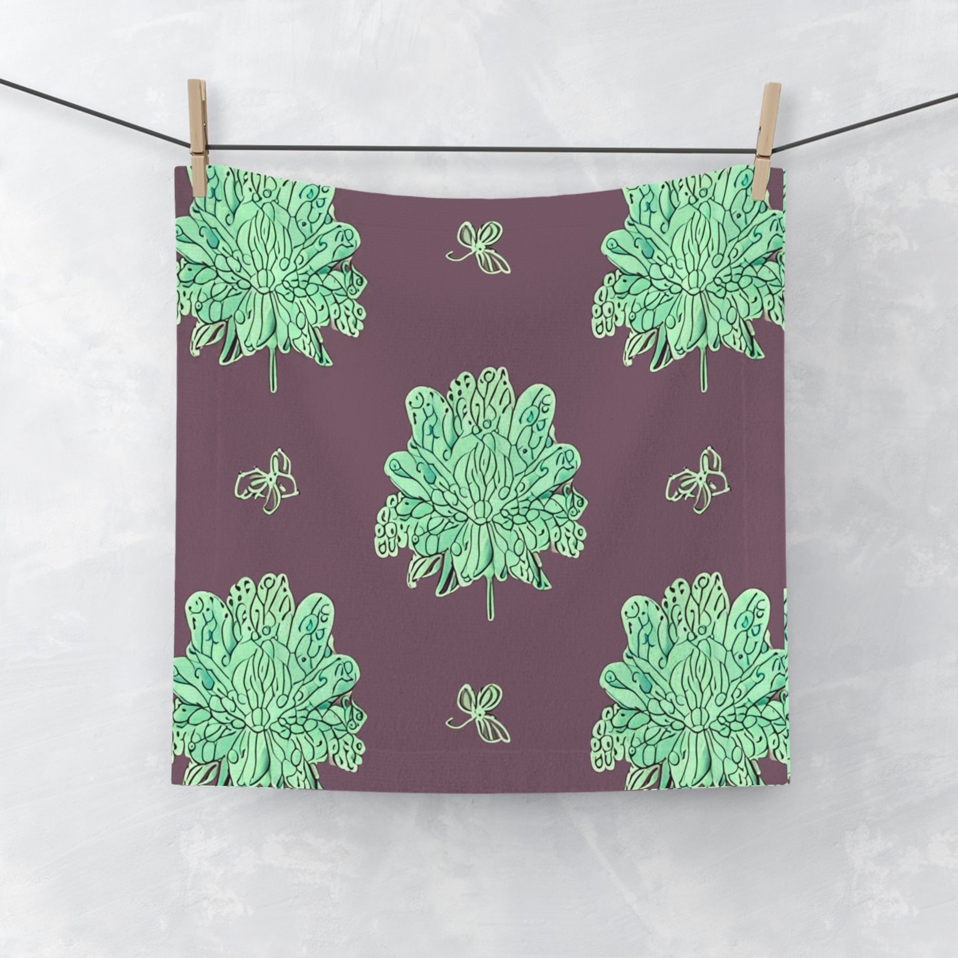 Mint Green Floral Butterflies Face Towel, 13" x 13"