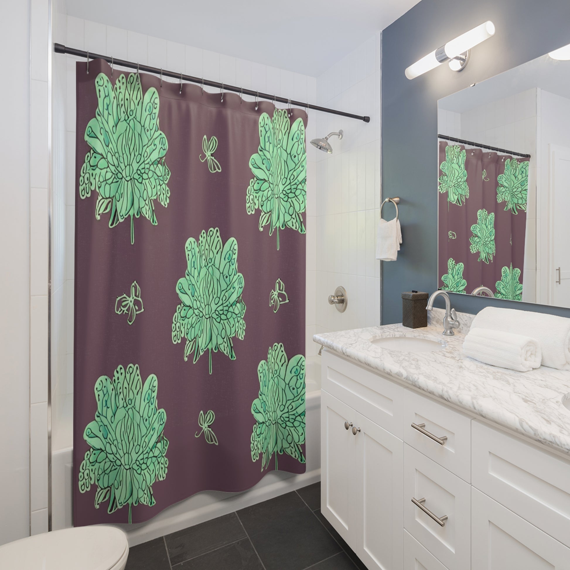Mint Green Floral Butterflies Shower Curtain, 71" x 74"