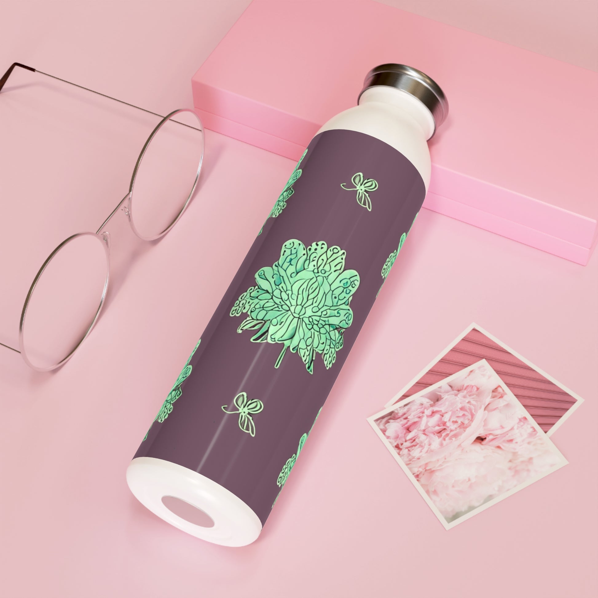 Mint Green Floral Butterflies Slim Water Bottle, 20 oz White