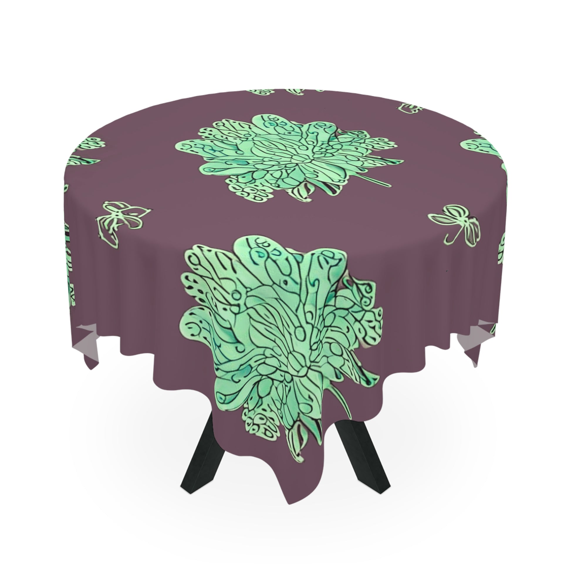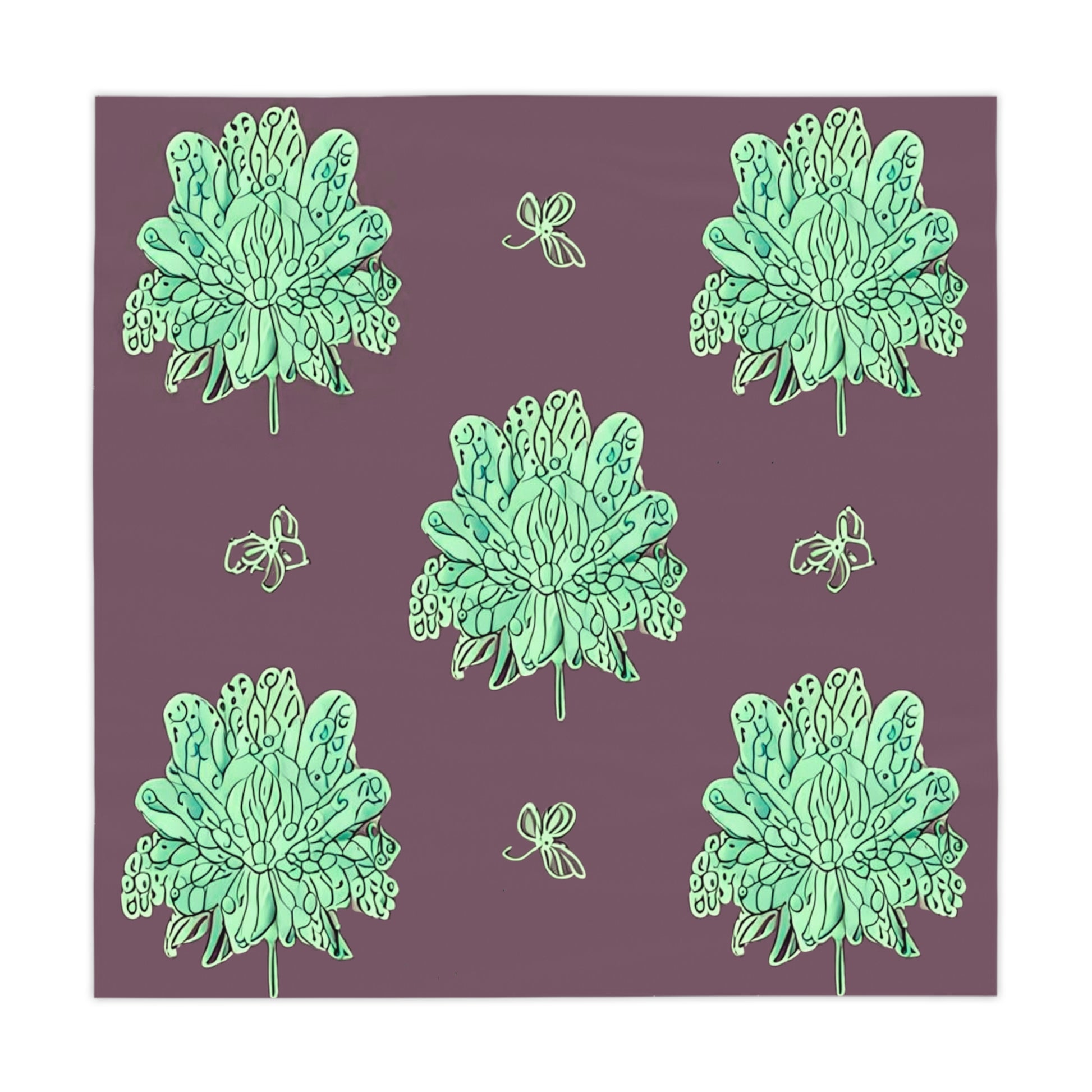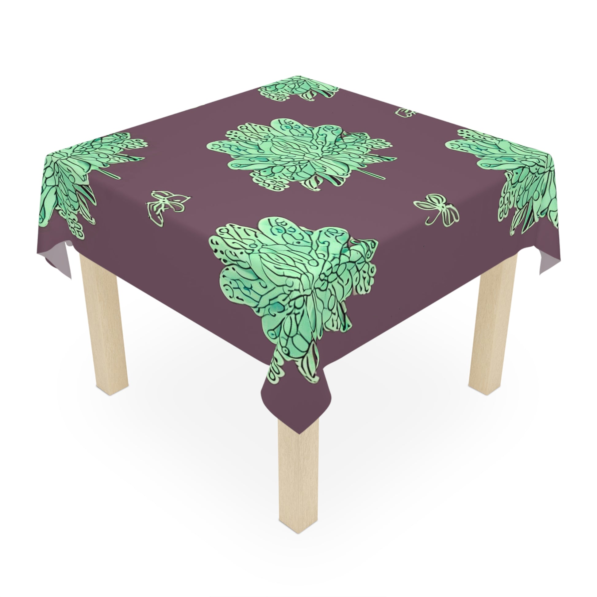 Mint Green Floral Butterflies Tablecloth, 55" x 55"