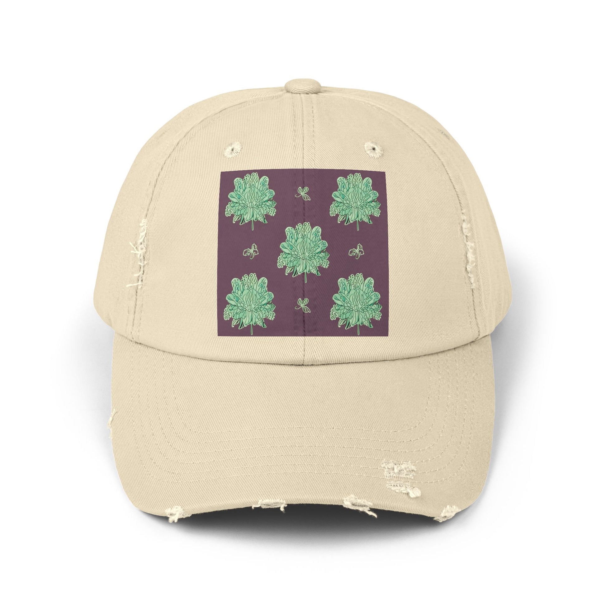 Mint Green Floral Butterflies Unisex Distressed Cap