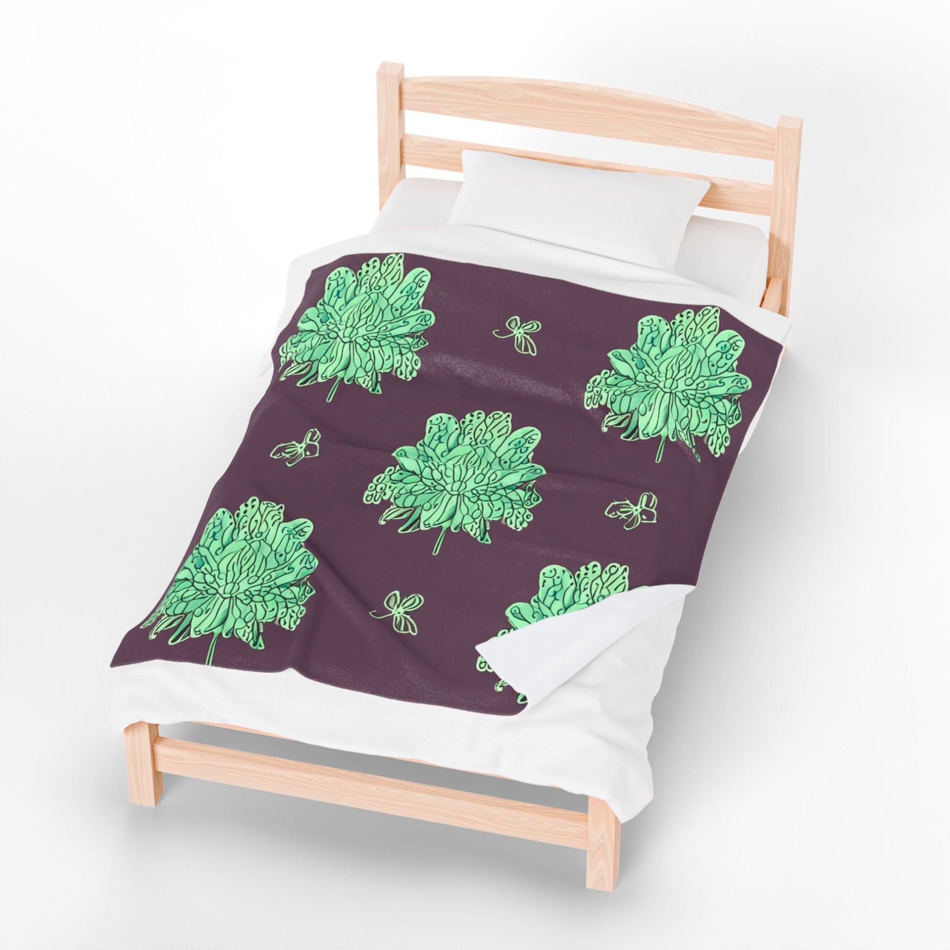 Mint Green Floral Butterflies Velveteen Plush Blanket, 50" x 60"