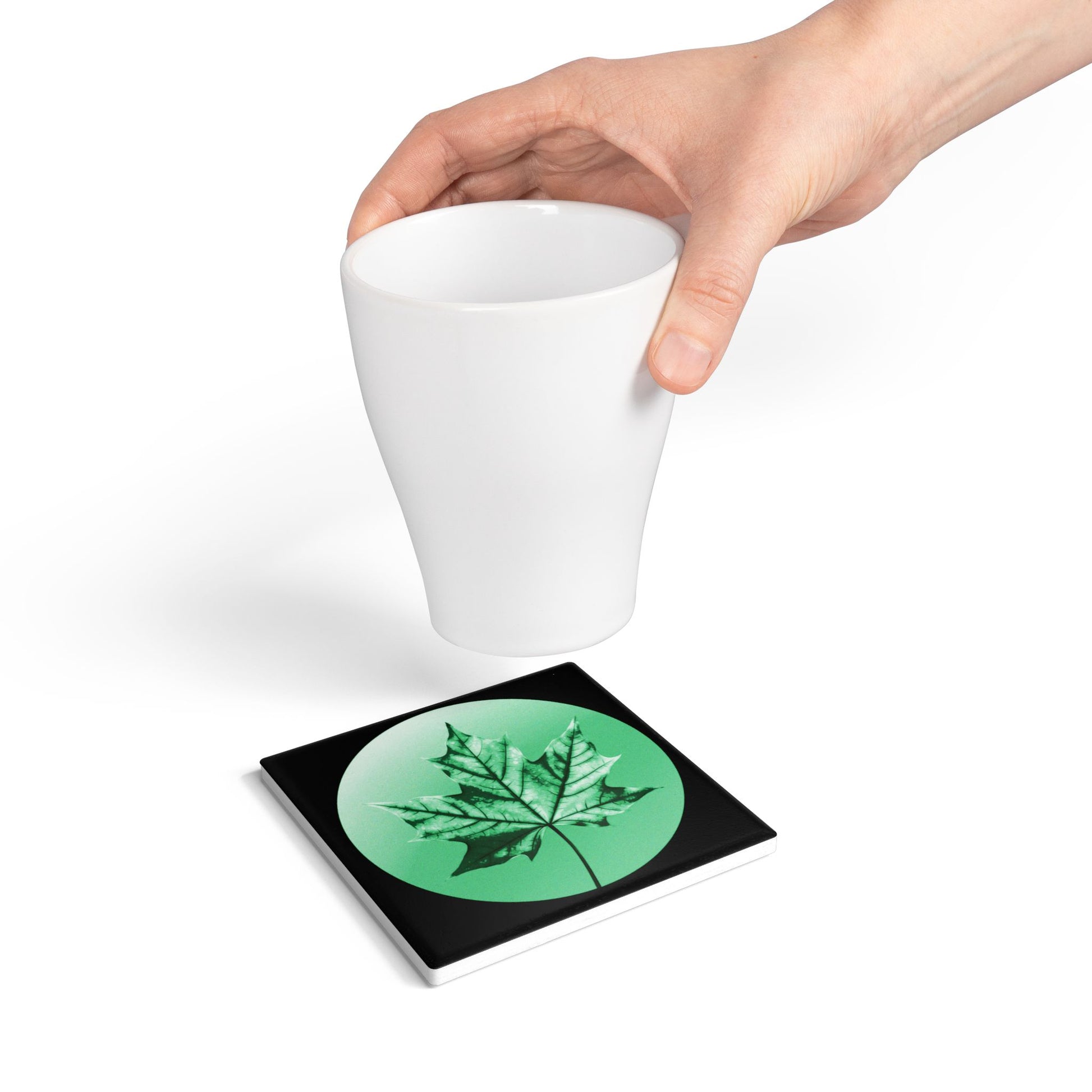 Mint Green Maple Leaf 4" x 4" Square Ceramic Coaster