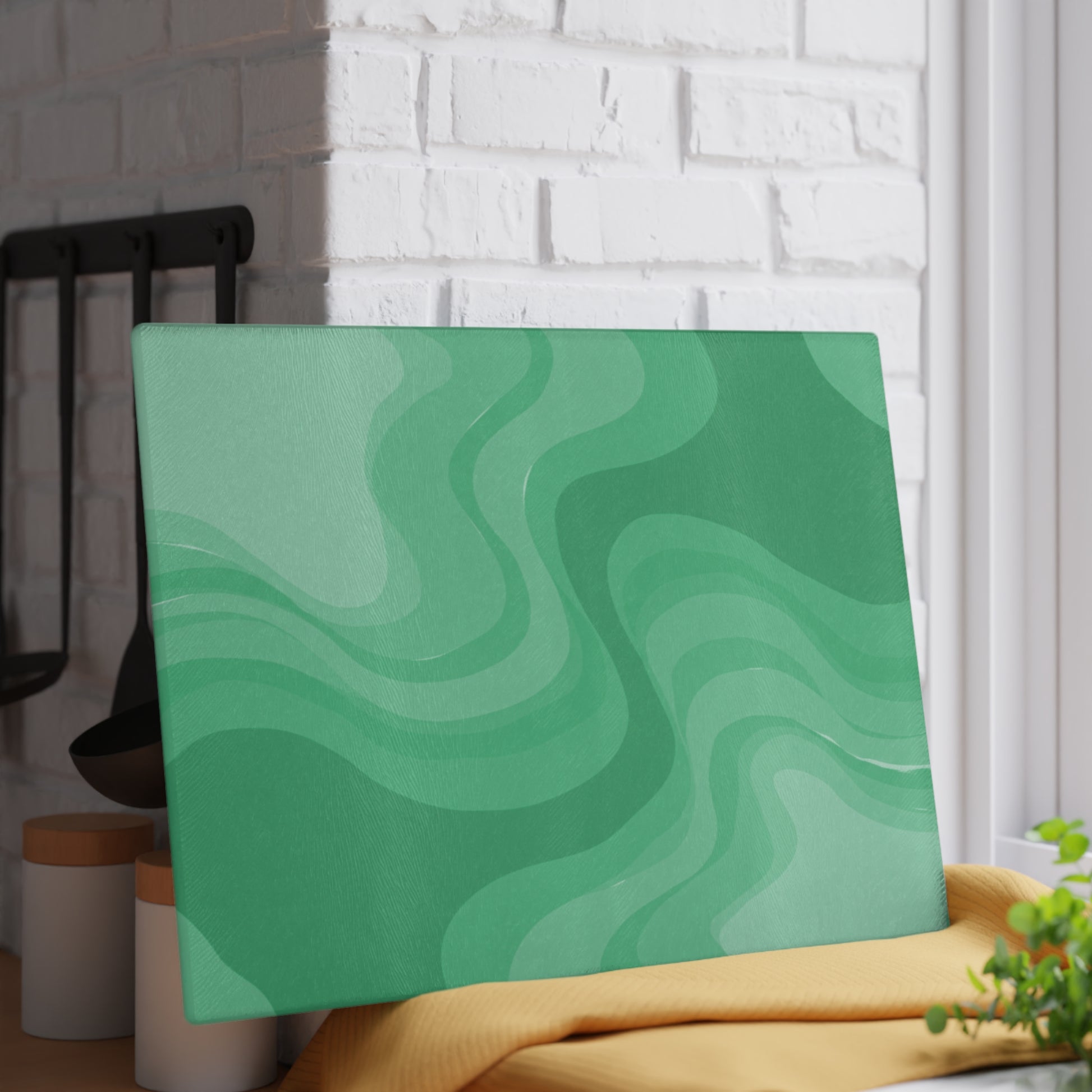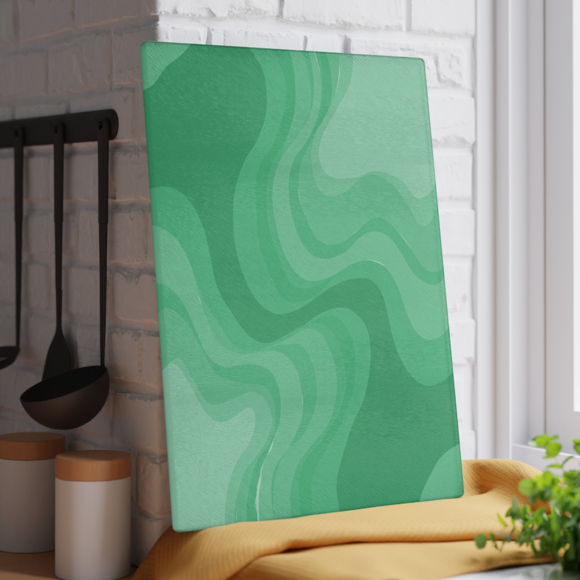 Mint Green Wavey Glass Cutting Board, 11" x 15"