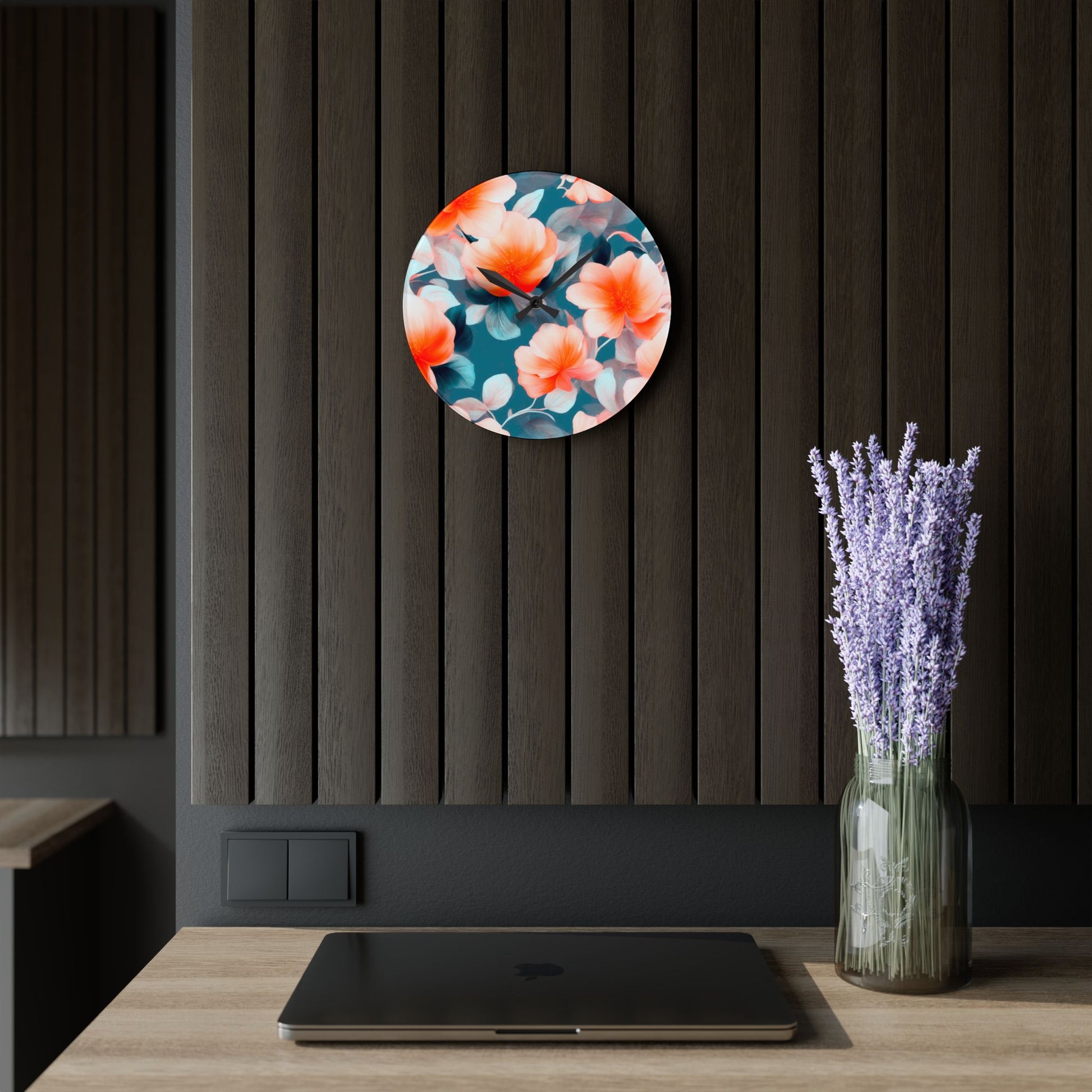 Orange Blossom Floral Bunch Acrylic Wall Clock, Round or Square, 10.75" x 10.75"