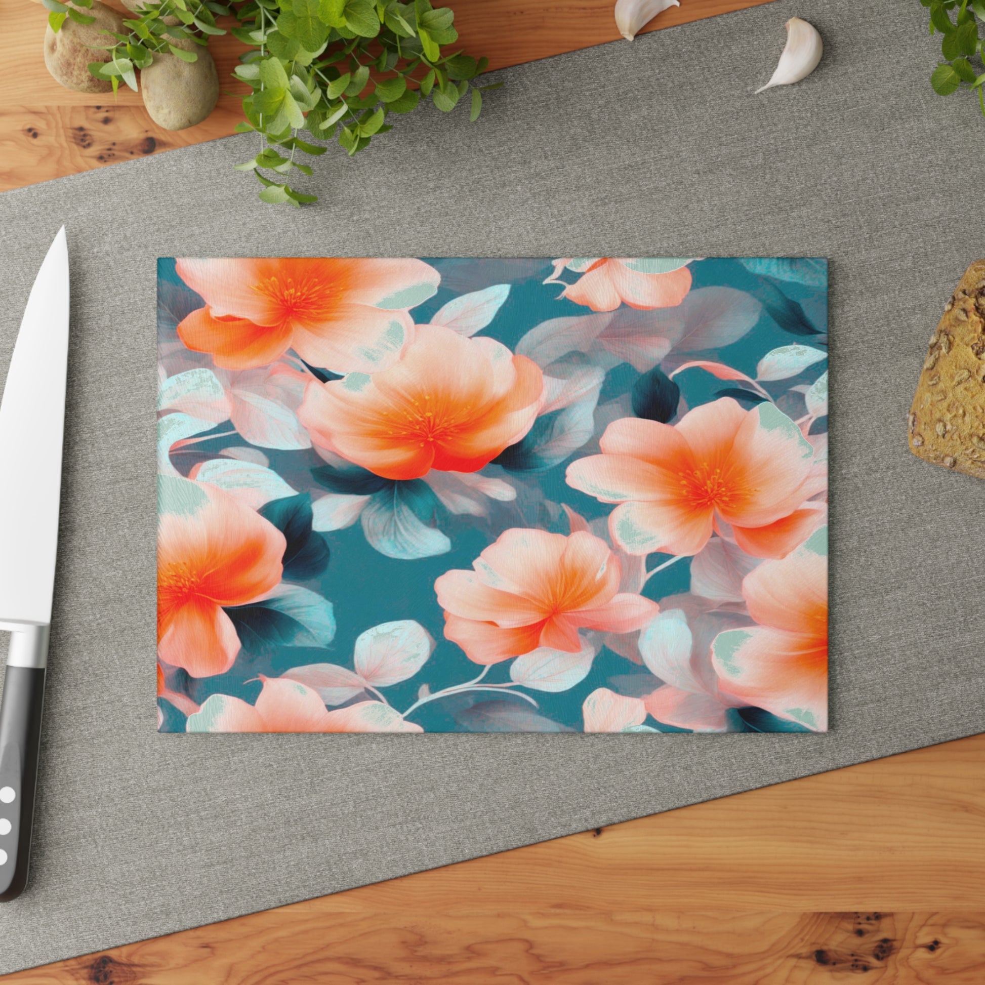 Orange Blossom Floral Bunch Glass Cutting Board, 8" x 11"