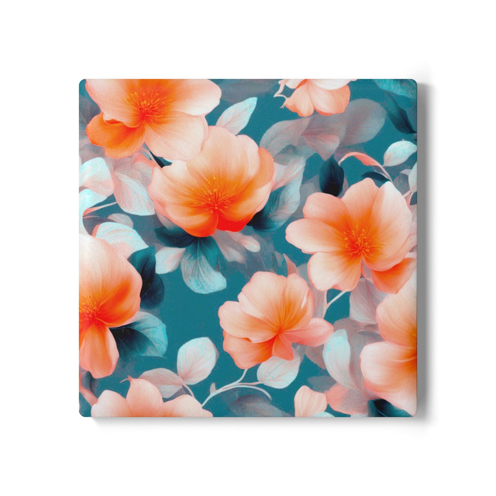 Orange Blossom Floral Bunch Square Ceramic Coaster, 4" x 4"