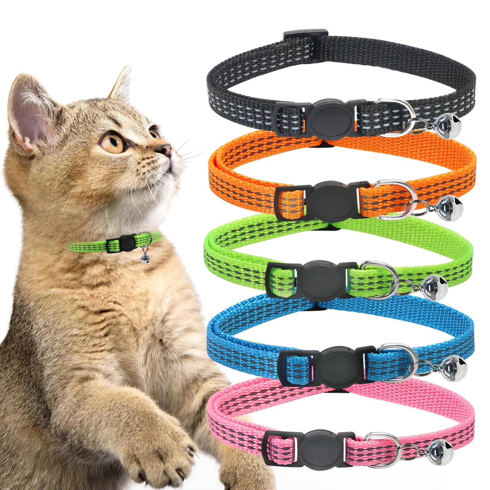 Pasking 10-Pack Reflective Cat Collars with Bells – Breakaway, Adjustable 8"-13", Colorful Collars for Kittens & Cats