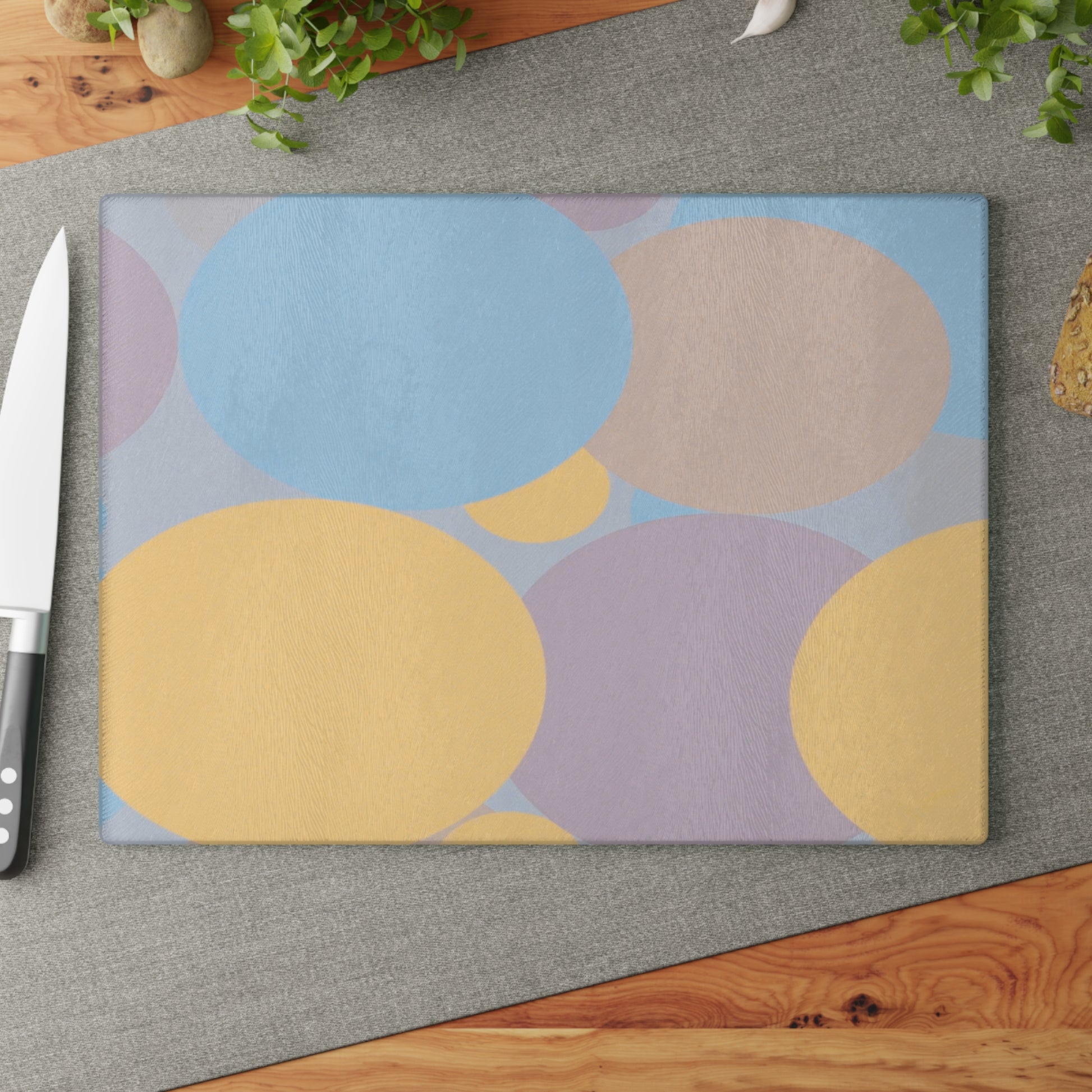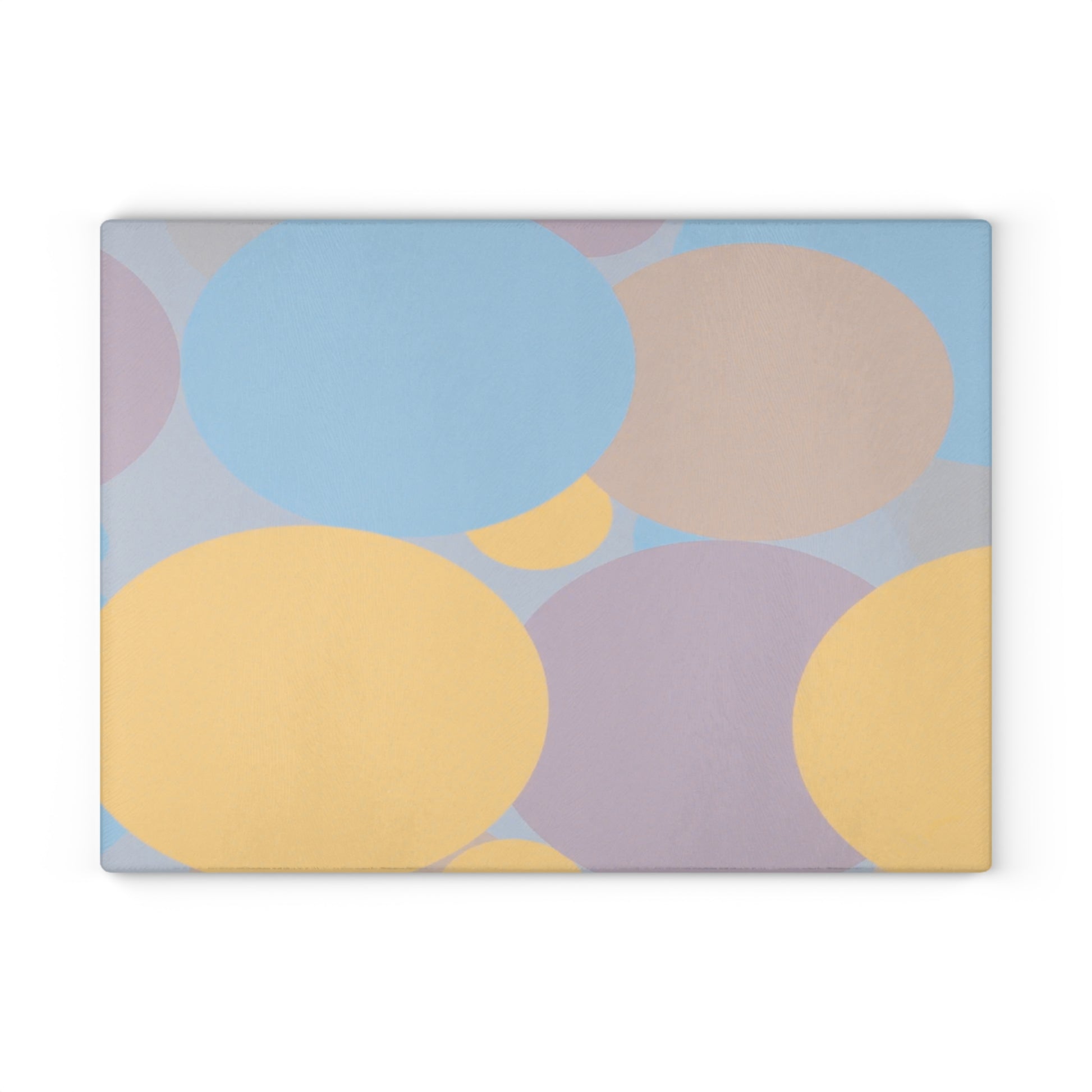 Pastel Baby Blue and Peach Patches 11" x 15" Glass Cutting Board